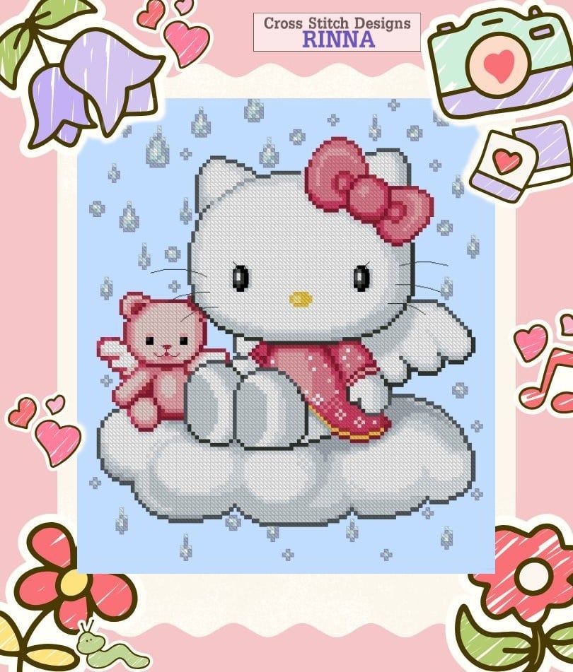 Cute Kiity -Rain Clouds Cross Stitch PDF Downloadable Patterns