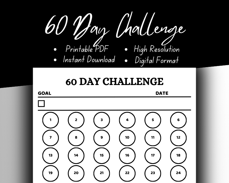 60 Day Challenge Printable PDF | Instant Download | High Resolution | Digital Format