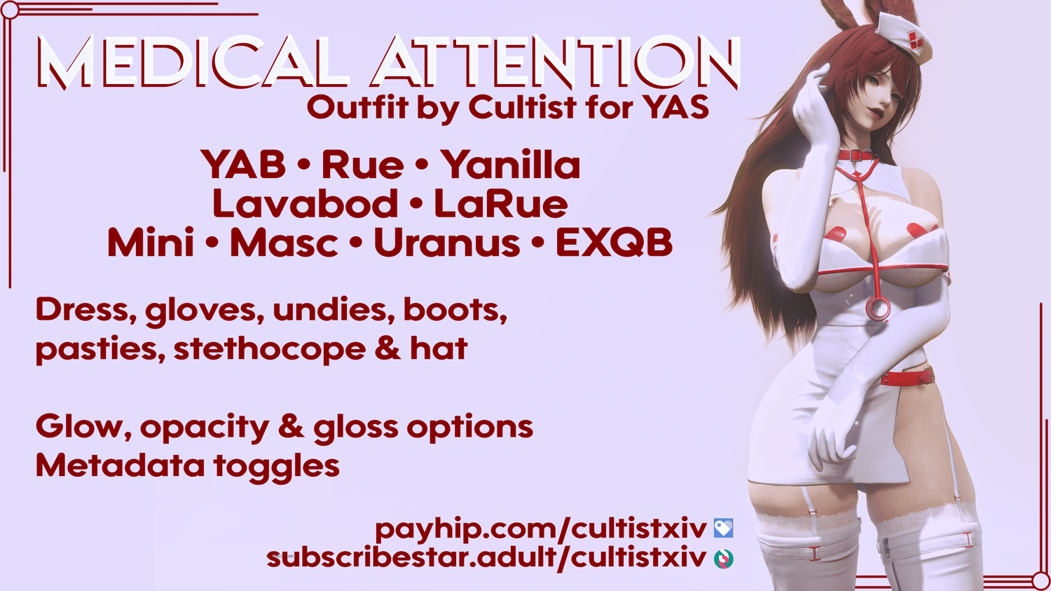Top is available for YAB S/M/L, Lavabod Omoi/Teardrop/Cupcake/Sugar, YAB Mini, YAMasc Flat and Pecs, Uranus Redux and EXQB with Rue and Buff variants.