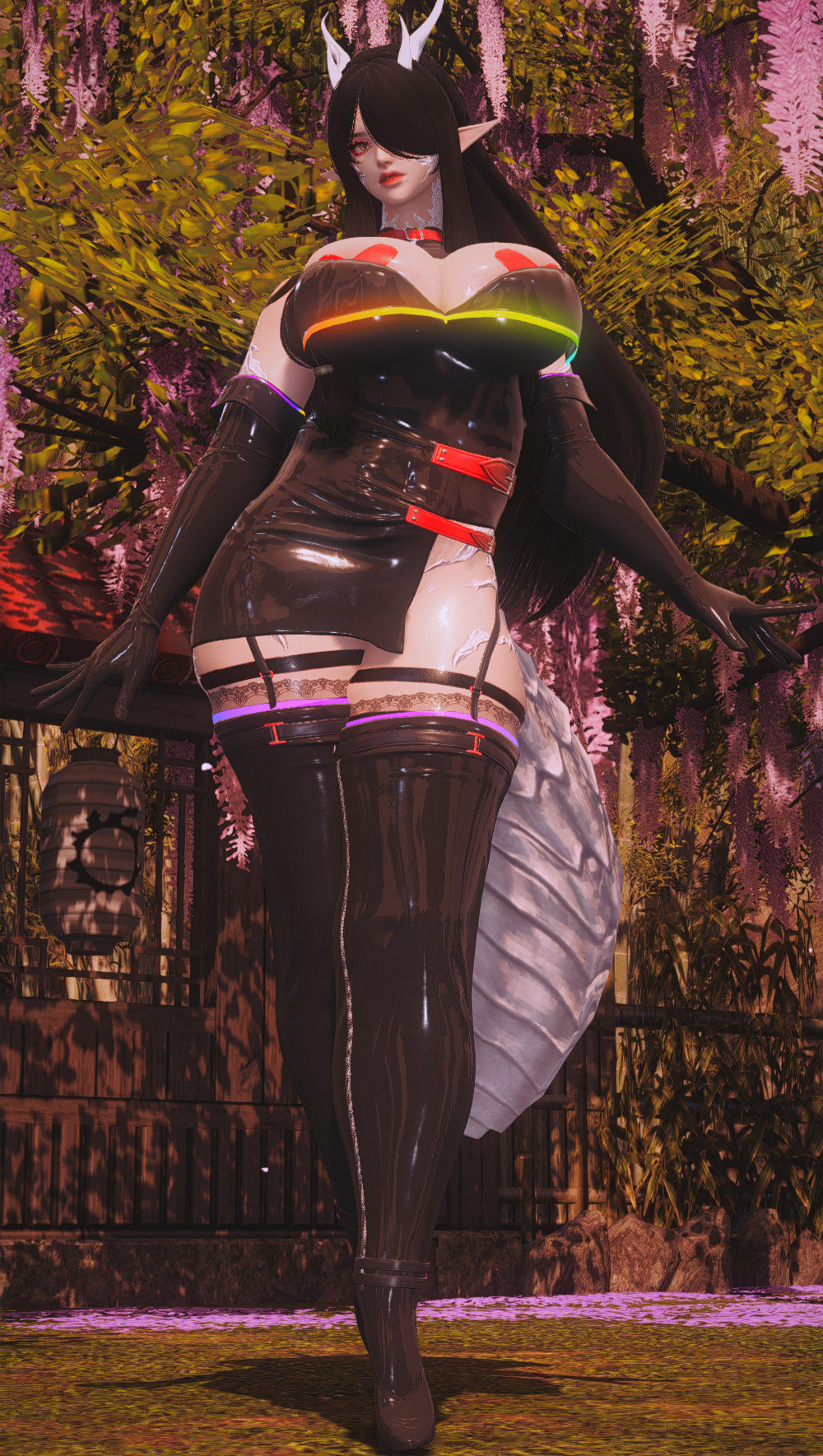 Includes an animated dyeable or RGB glow option for the red details of the dress, gloves, hat & the stocking seams, an increased gloss option, three opacities for the stockings and metadata toggles.
