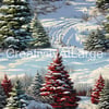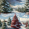 Snow Pine Trees Farm Retro Winter Christmas 4 PNG Images Seamless Pattern