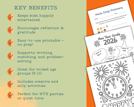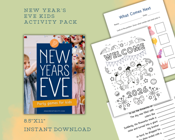 Whether you’re looking to fill the time before the big countdown or create a meaningful memory with your little ones, this printable bundle is screen-free, creative, and full of laughter.