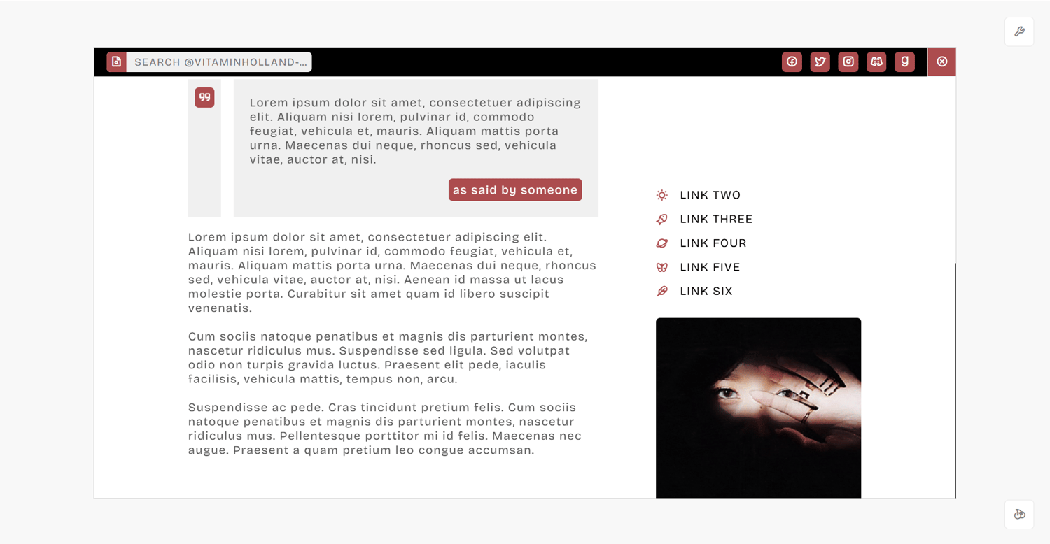 features: 1050x550px full background image, 350x350px sidebar image, blog title, six custom links, search bar, socials section, about title, about information section, about quote section, about section, 250x220px about image, 450px to 540px text posts