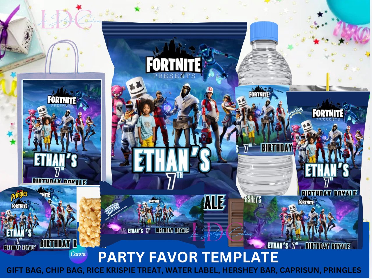 Editable Fortnite Party Favor Templates | Customizable Designs for Canva