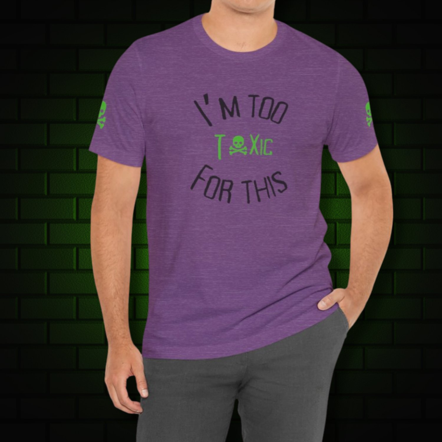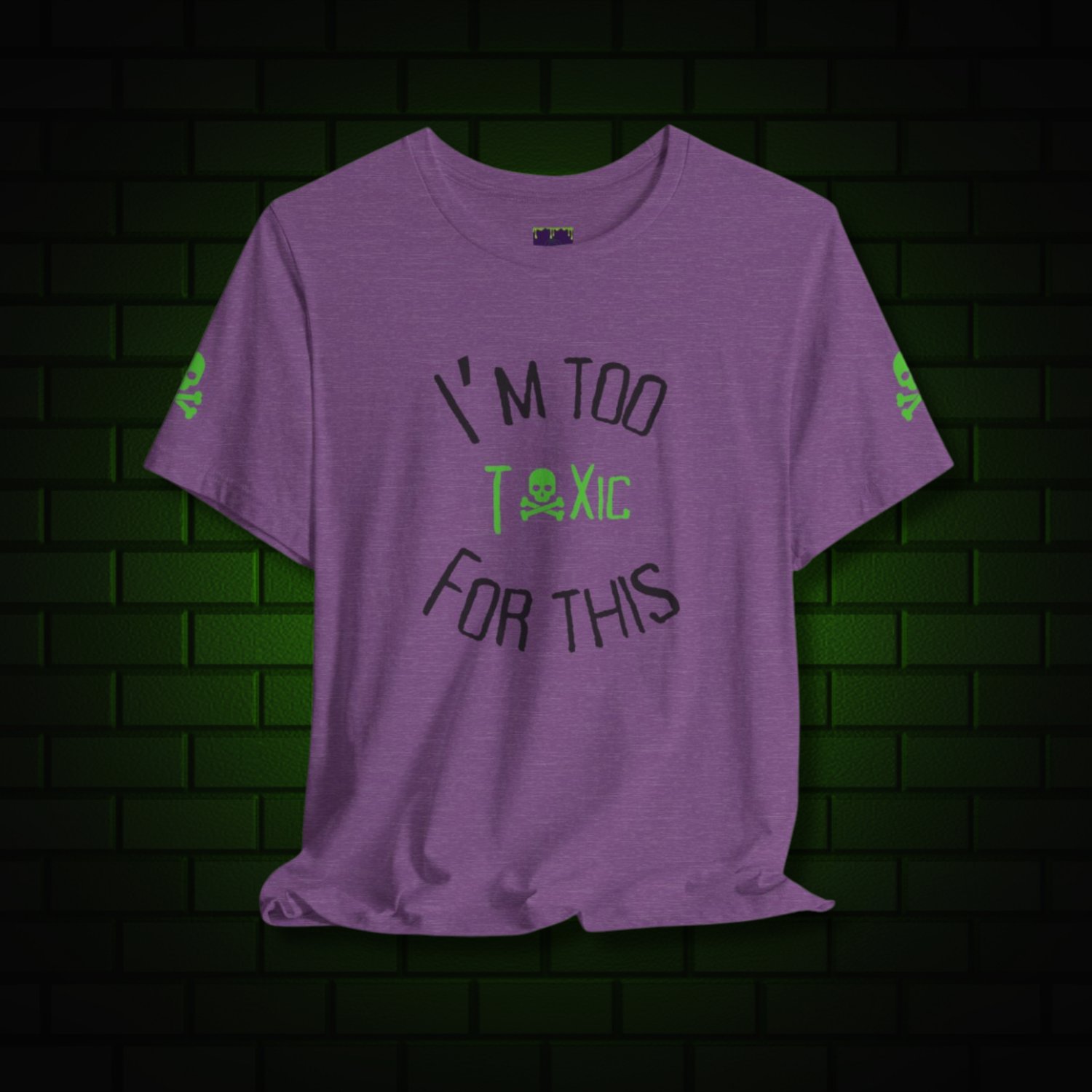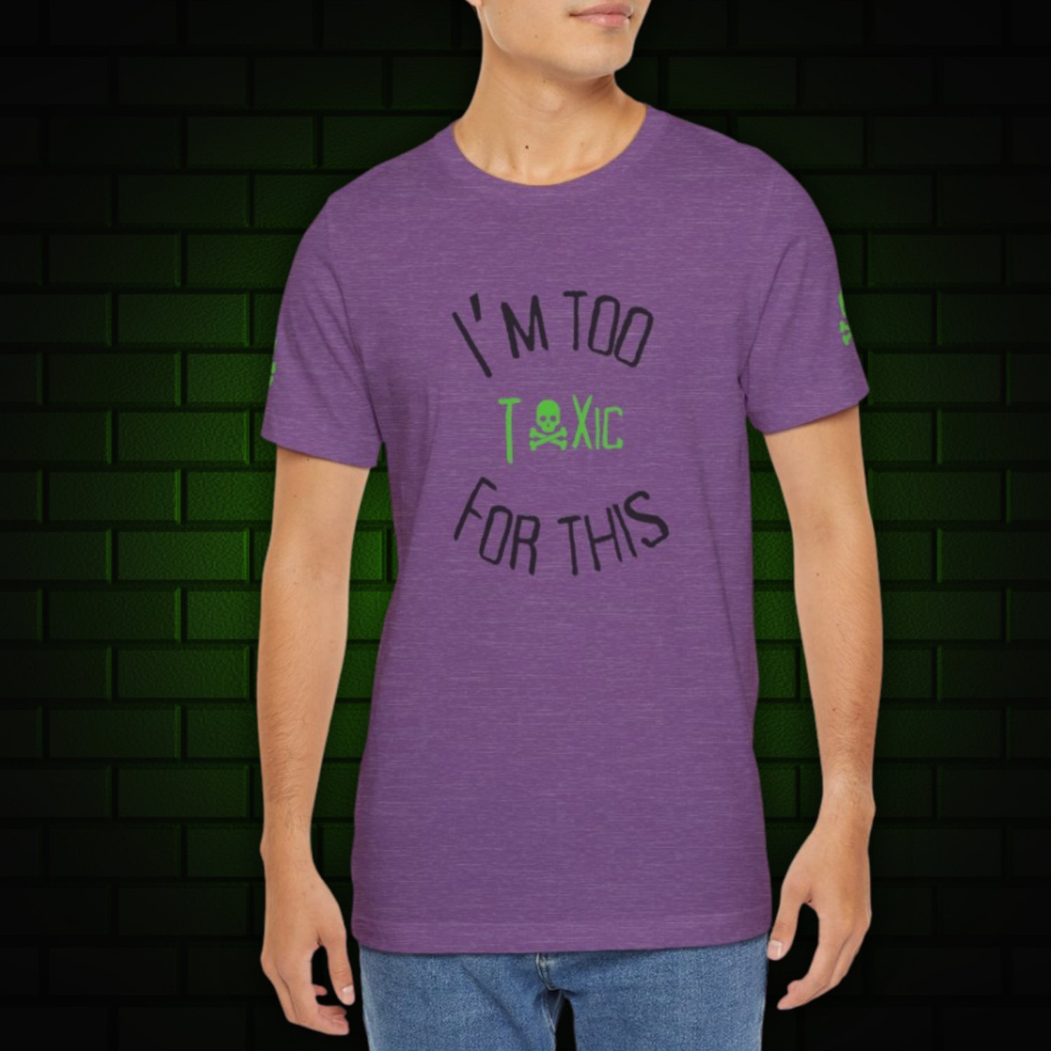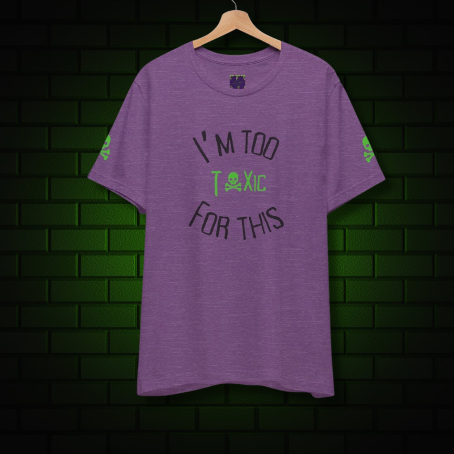 I’m Too Toxic for This Game” Bella + Canvas T-Shirt – Heather Team Purple – Funny Gamer Shirt for Streamers & Gamers