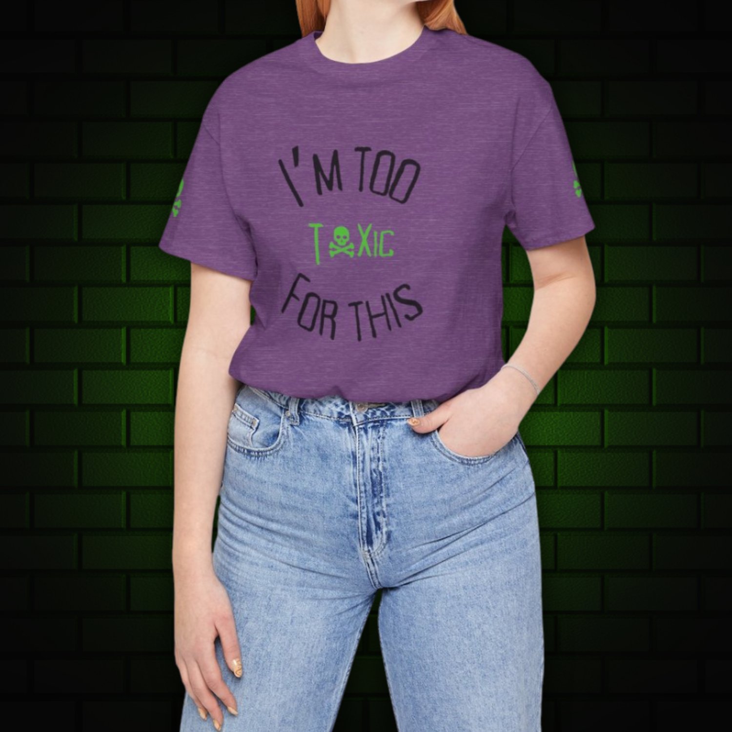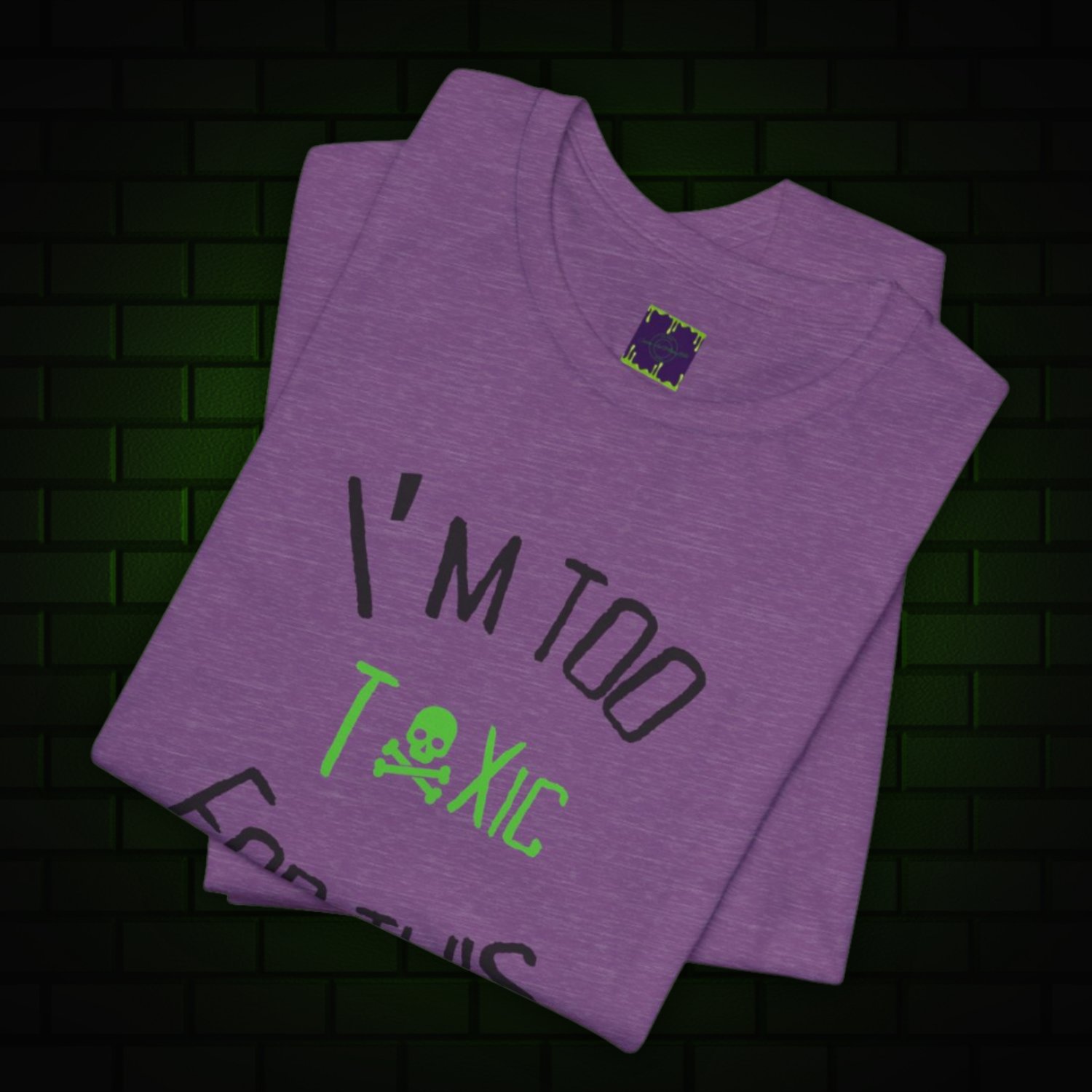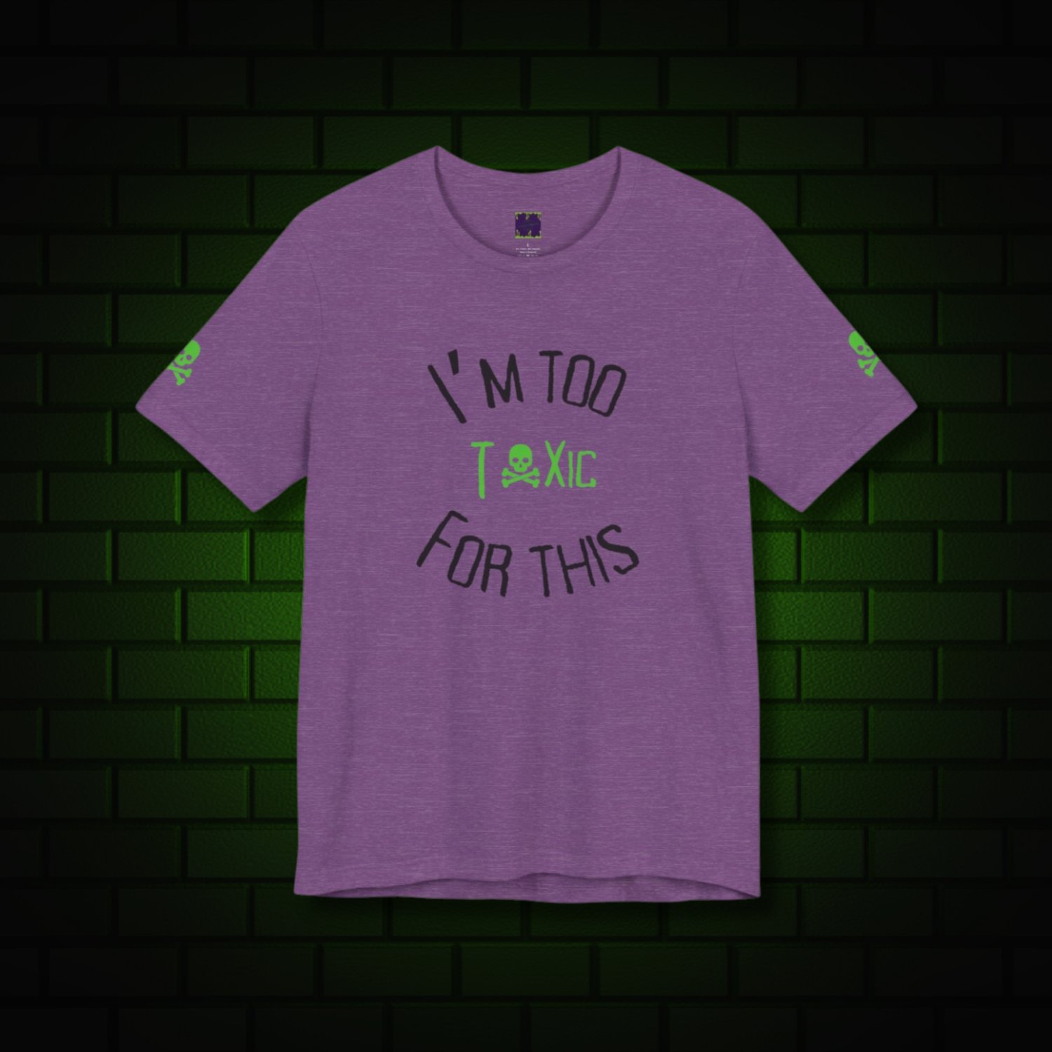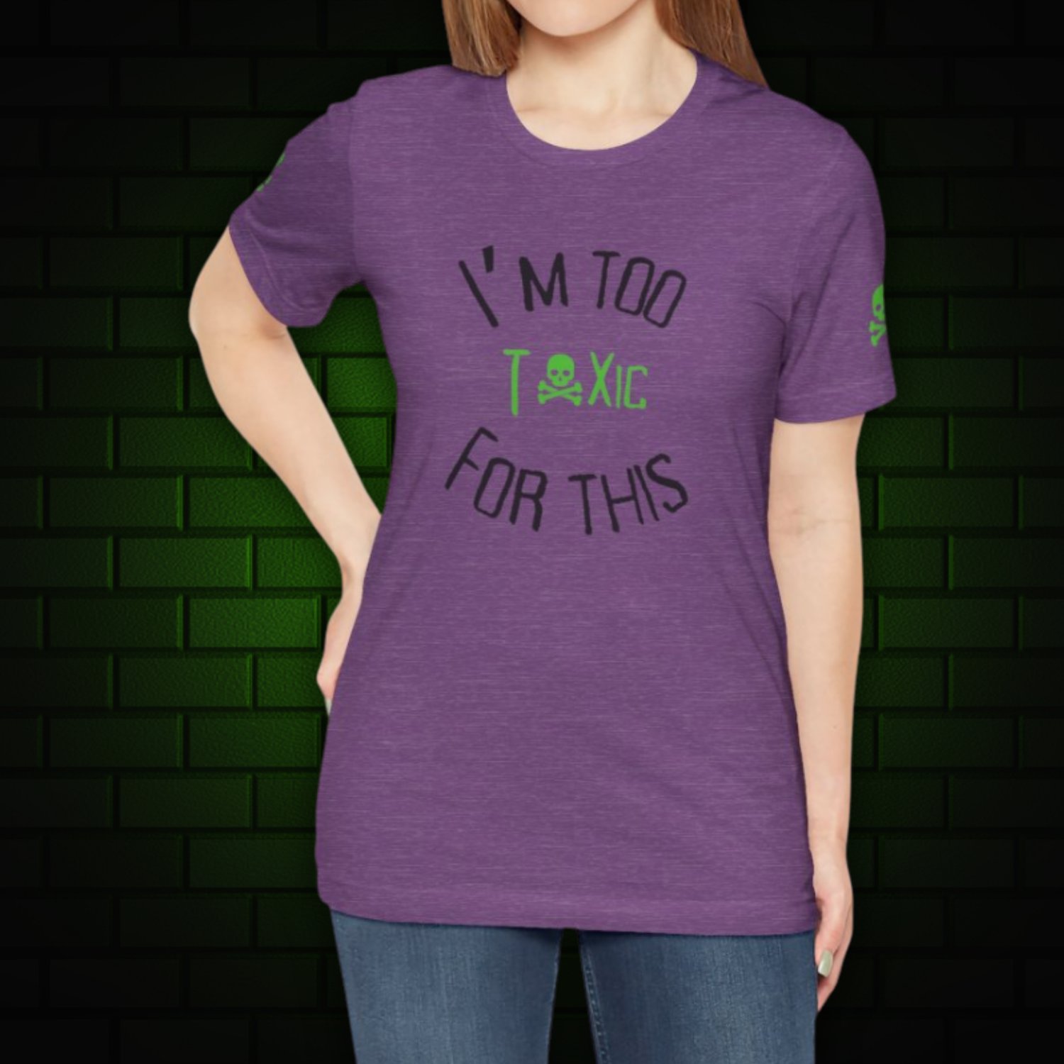 I’m Too Toxic for This Game” Bella + Canvas T-Shirt – Heather Team Purple – Funny Gamer Shirt for Streamers & Gamers