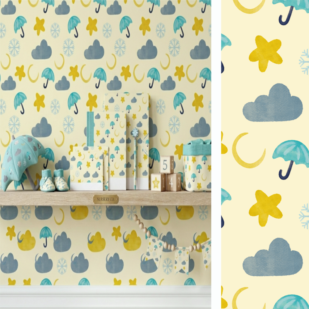 A whimsical cloudy seamless pattern designed for modern home decor, nurseries, wallpapers, fabric, and textile applications.