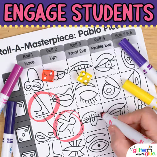 ⭐️⭐️⭐️⭐️⭐️ “Perfect introduction to Picasso—students loved rolling dice to design portraits. Their final artwork was amazing!”