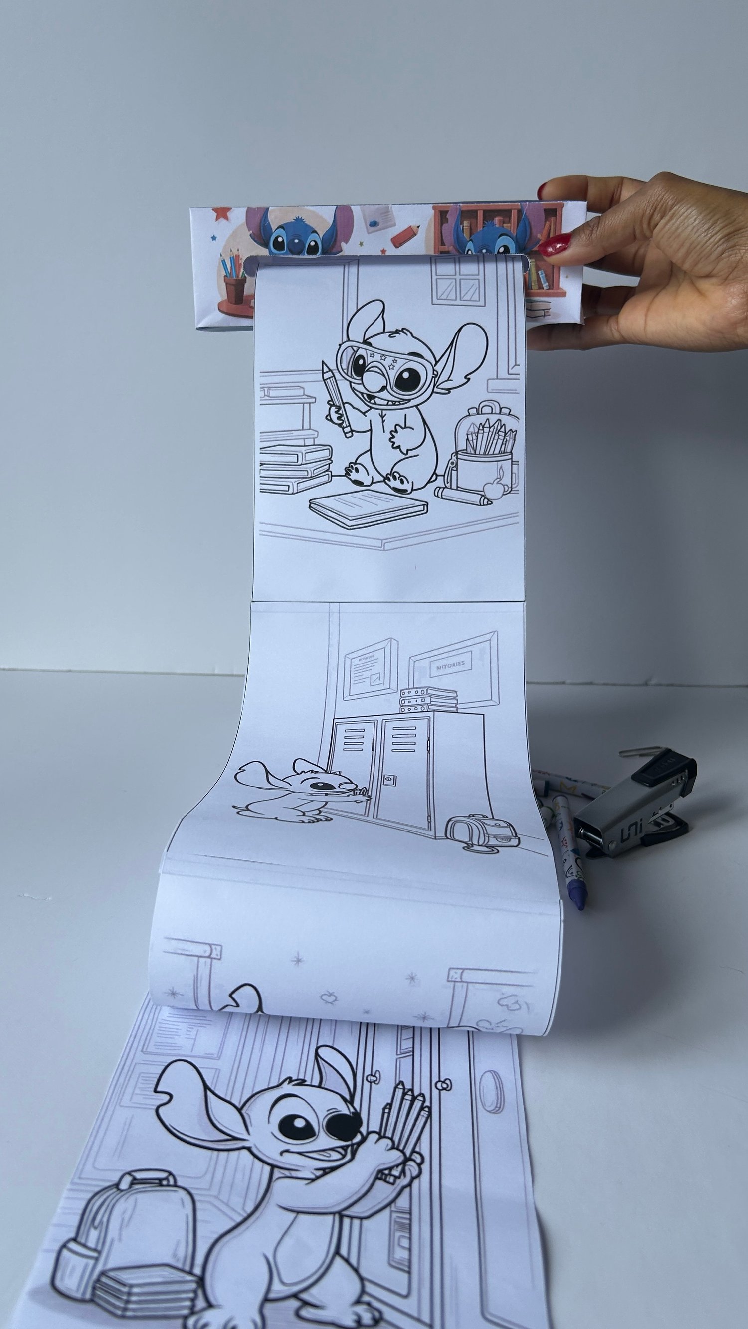 - Rollo de hojas para colorear con ilustraciones adorables de Stitch
