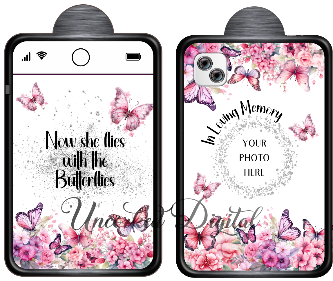 In loving memory mobile phone style keyring designs in 4 colour options and with and without the reverse text to fit the blanks from Woodfrom Crafts.