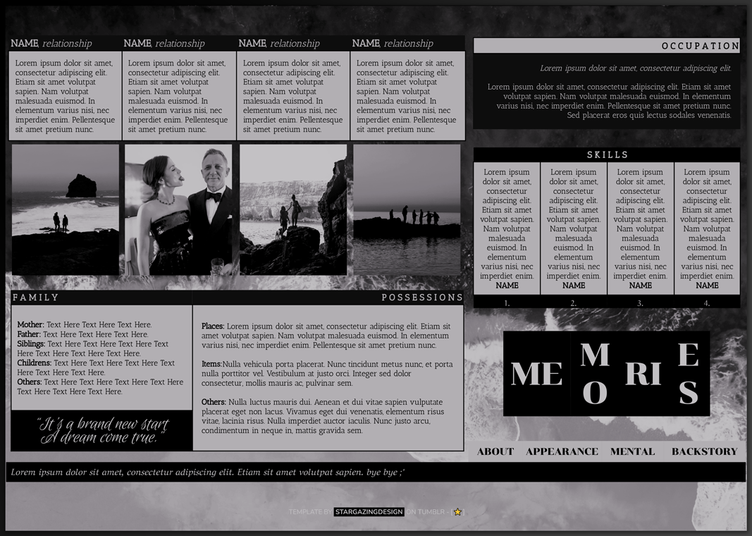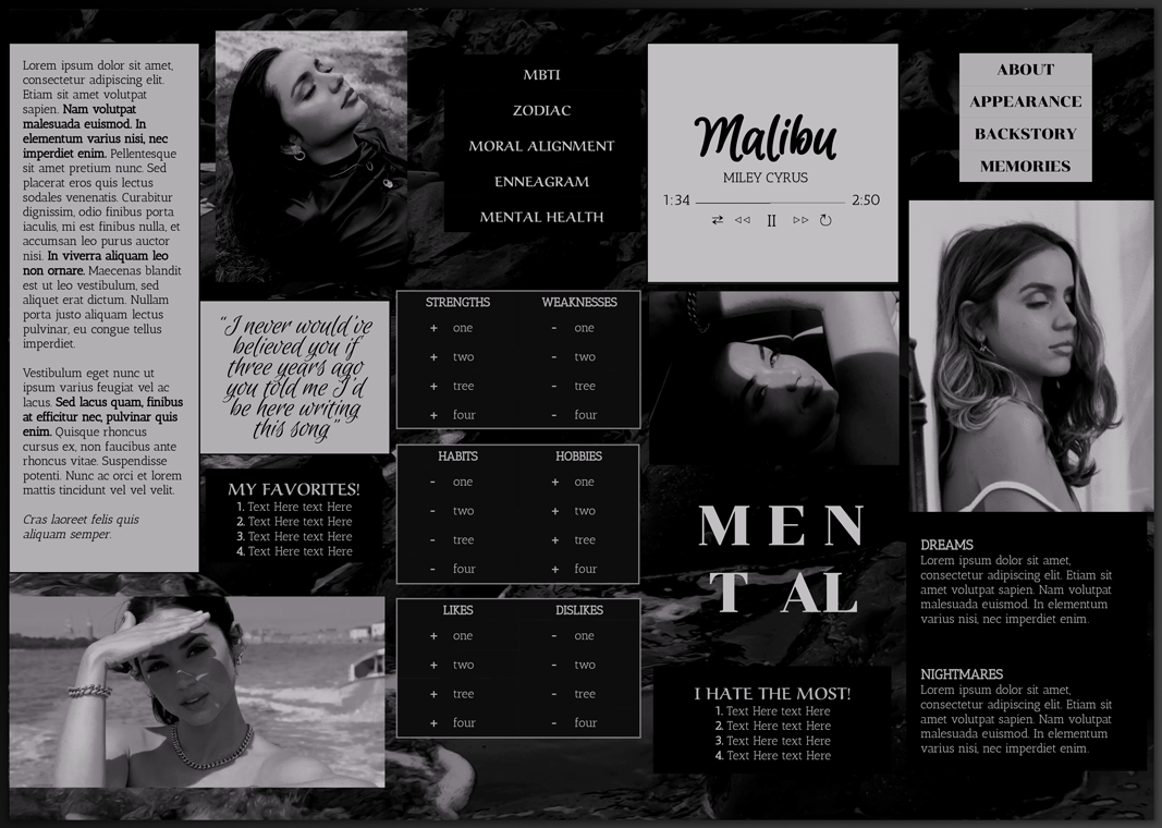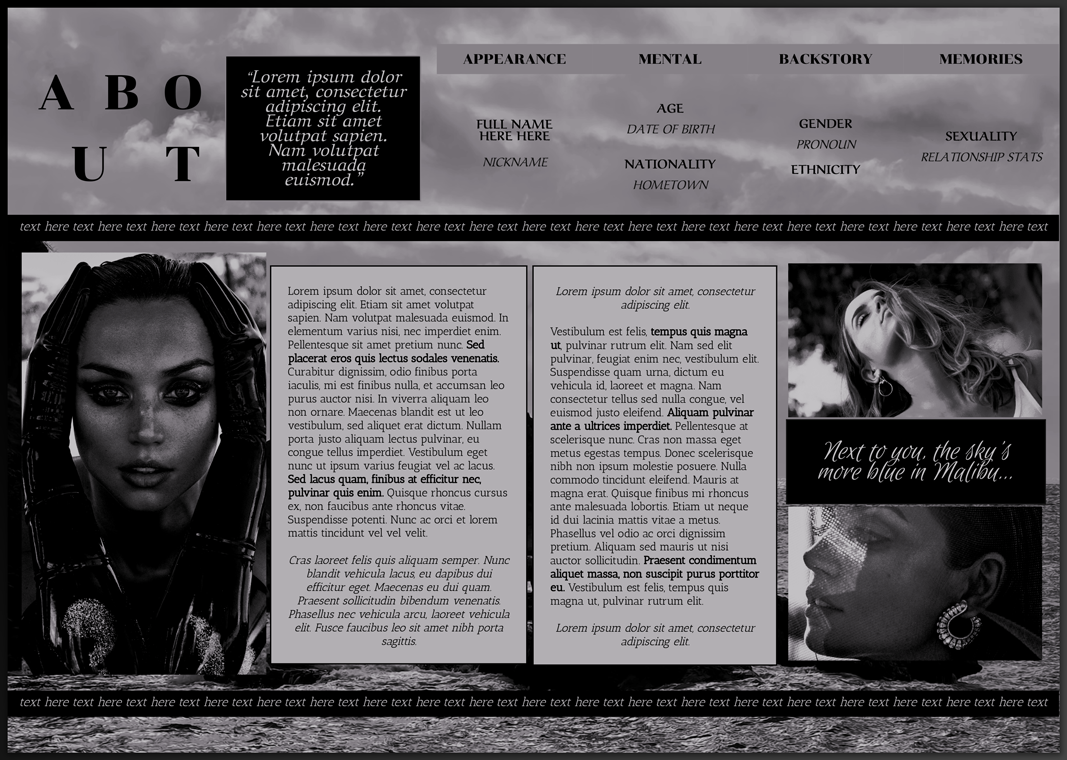Placeholder pictures are of Ana de Armas, colorized in Photoshop with the psd Noir from the amazing TigerEdits.