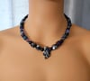 Chunky Necklace Dark Blue Gemstone and Czech glass beads