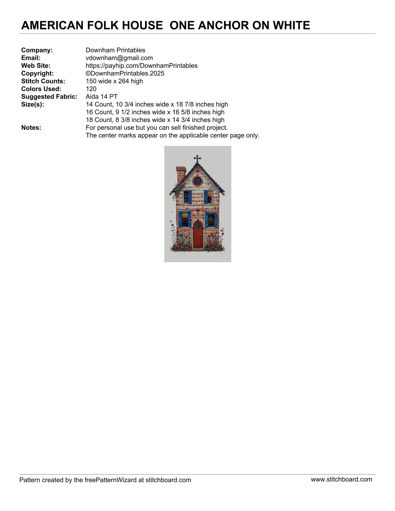 AMERICAN FOLK HOUSE ONE CROSS STITCH PATTERN