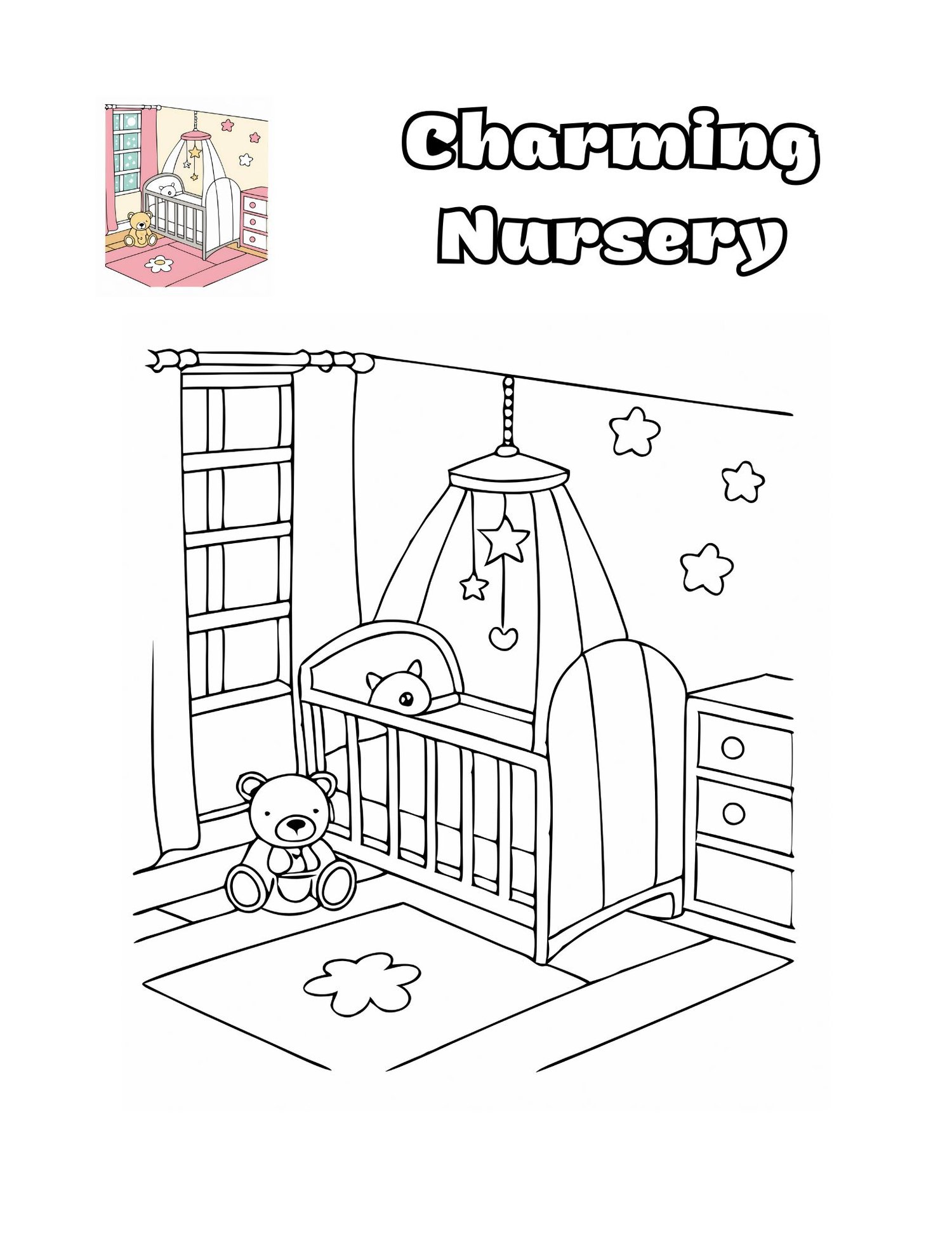 📖 25 beautifully detailed scenes with a colored version on the left and a black-and-white outline on the right.