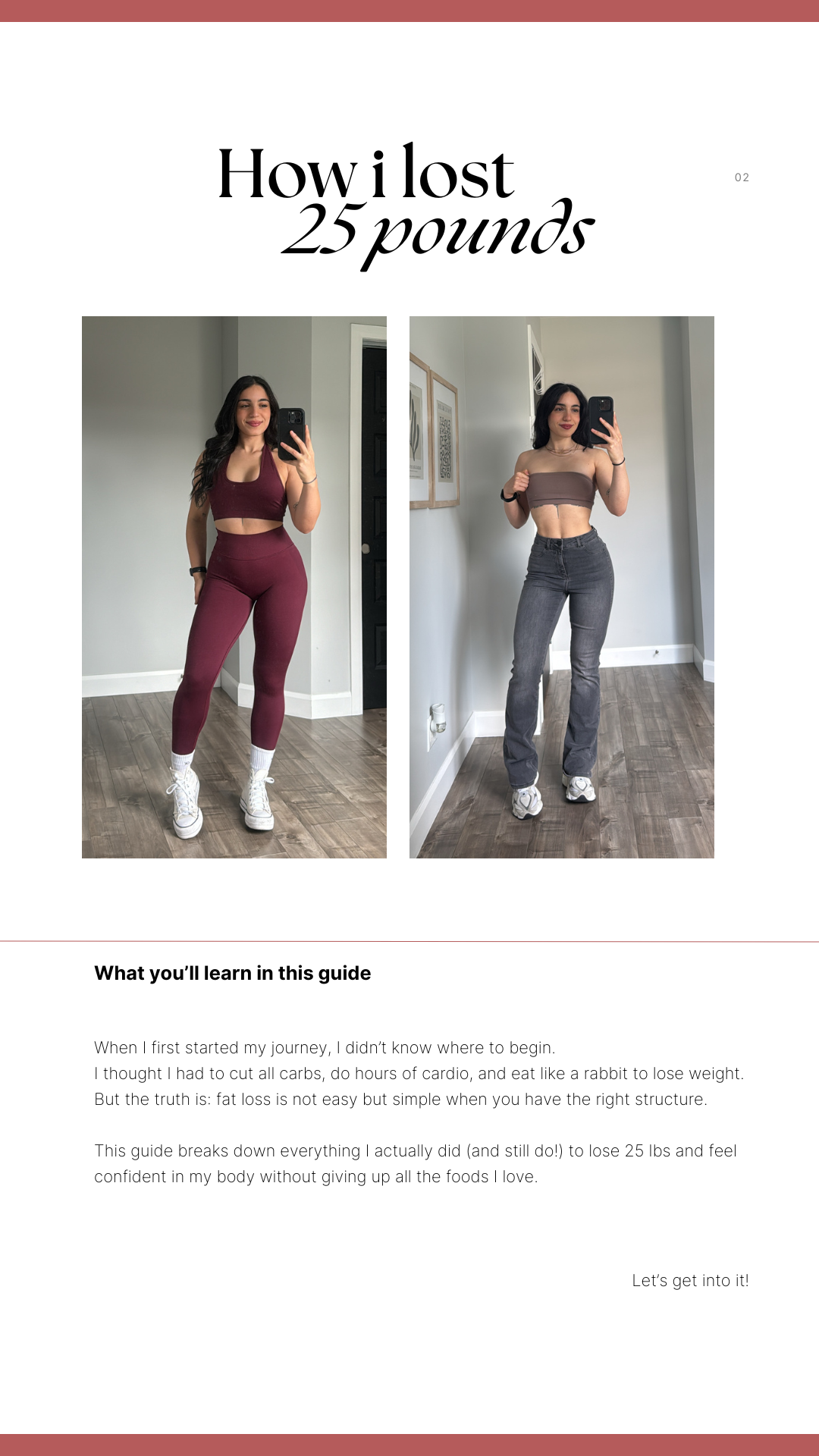 When I first started my journey, I didn’t know where to begin.I thought I had to cut all carbs, do hours of cardio, and eat like a rabbit to lose weight.But the truth is: fat loss is not easy but simple when you have the right structure.This guide breaks down everything I actually did (and still do!) to lose 25 lbs and feelconfident in my body without giving up all the foods I love.