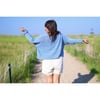 An easy-wearing long-sleeved cotton tee with a sweatshirt fit accented with raw edges and body framing dropped stitches for an airy casual vibe, equally cozy in cotton or wool, and the perfect weight for transitioning from summer to early autumn!