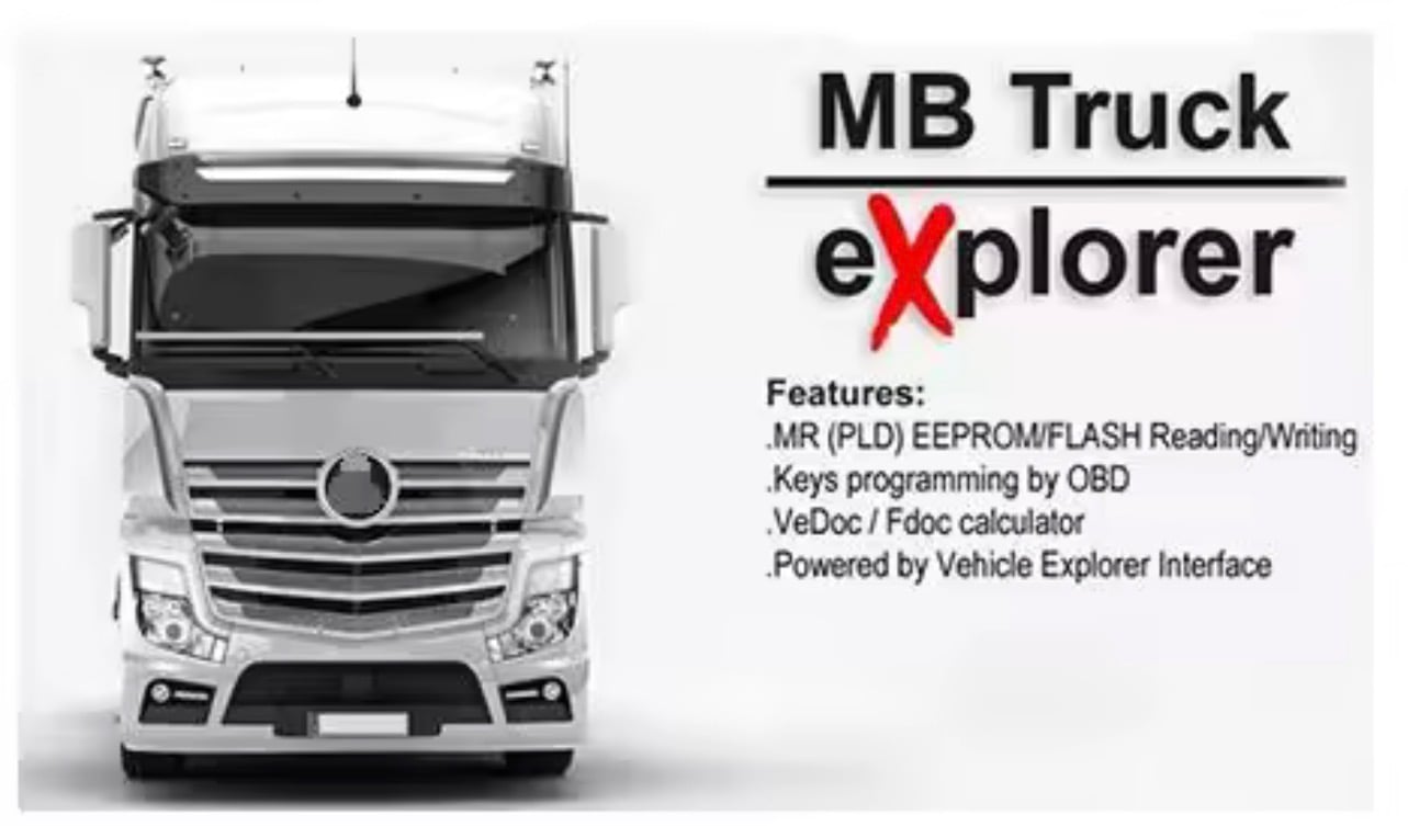 MB Truck Explorer - unique tool on the market for special operations on Mercedes-Benz, MAZ, CLASS trucks and buses. It allows to read/write FLASH and EEPROMs from MR (PLD) control unit, program new keys and calculate VeDoc (X1, X2...) and FDOK (XT, XN) access codes. All operations are done via OBD and offline, no internet connection required.