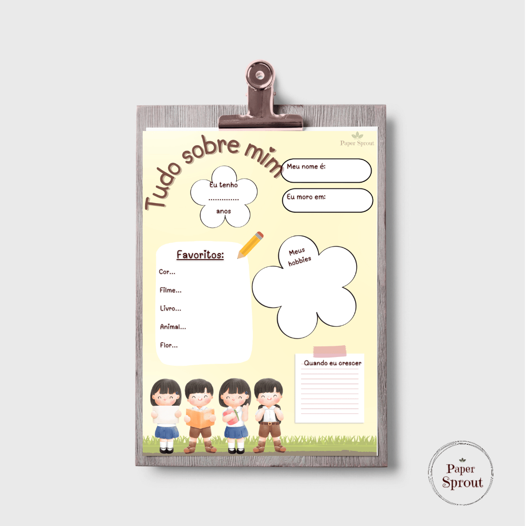 All About Me – Kids’ Writing Activity (Portuguese – Freebie)