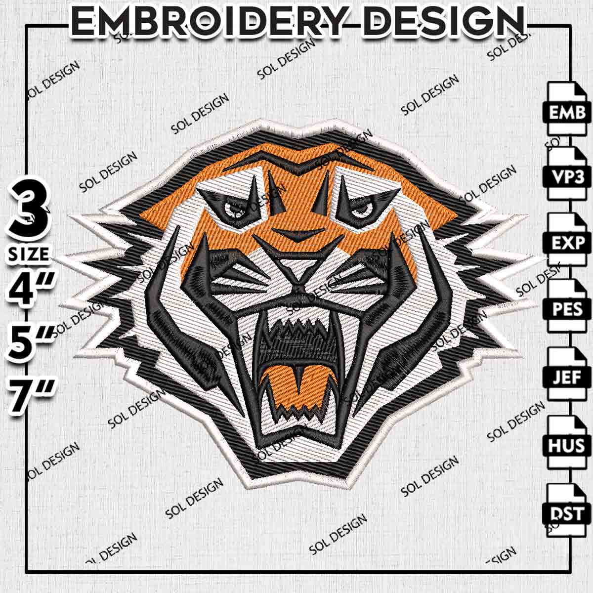 NRL Wests Tigers Head Mascot Logos Embroidery Designs, NRL Tigers Team Logo Embroidery, Rugby League Machine Embroidery Design, Digital Dowload