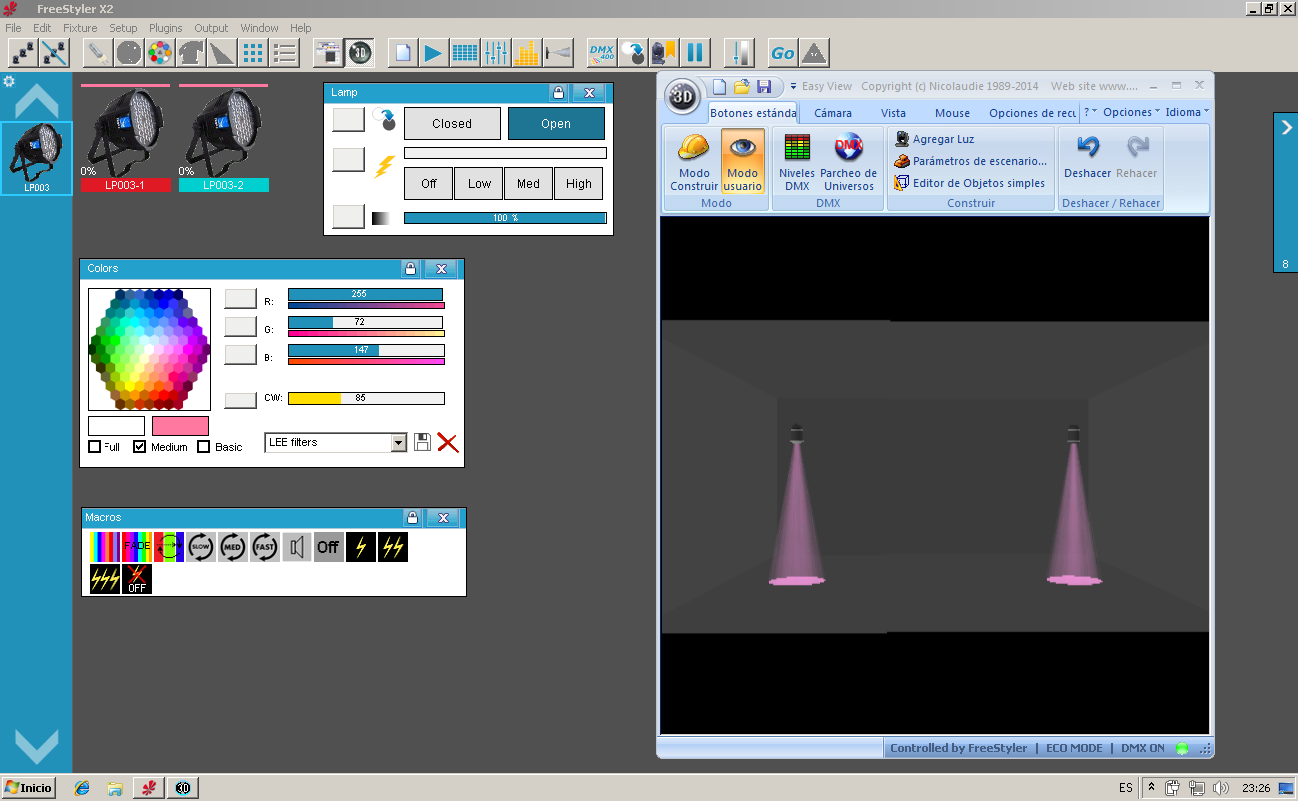 Esta Librería SSL2 está optimizada para trabajar con Magic 3d Easy View. Es decir para ver una representación 3D de las secuencias que estemos realizando con Freestyler, QLC+ o cualquier otro soft que se conecte con Magic 3d.