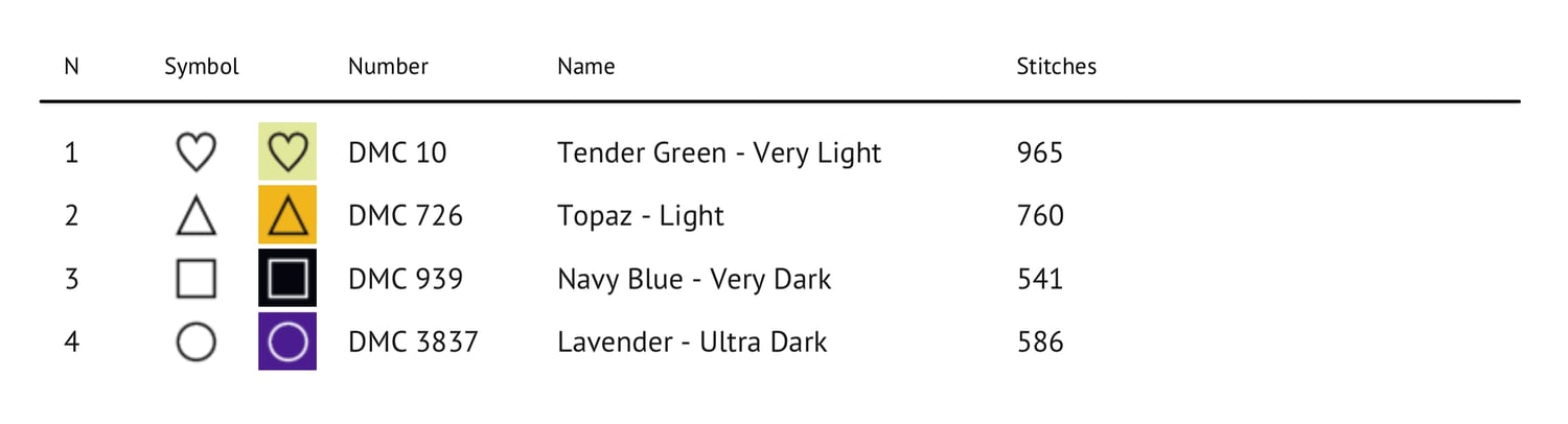 See second image for thread colors.