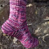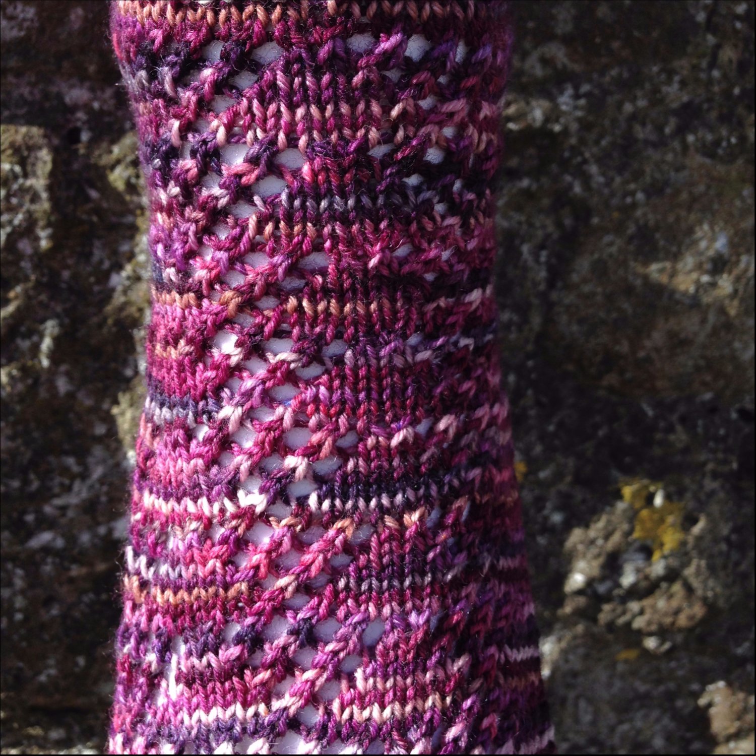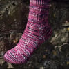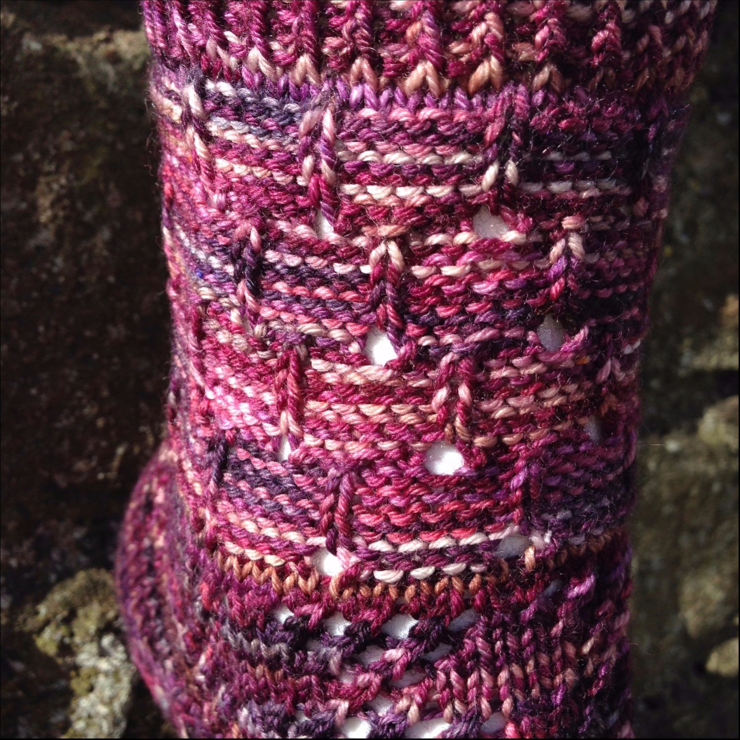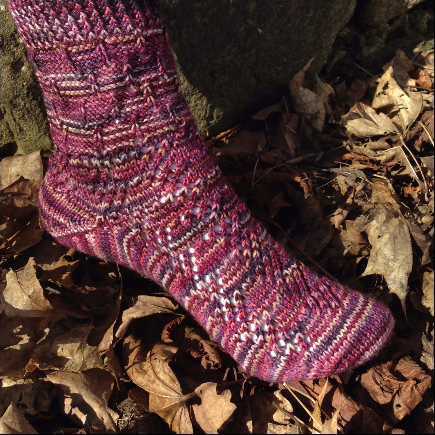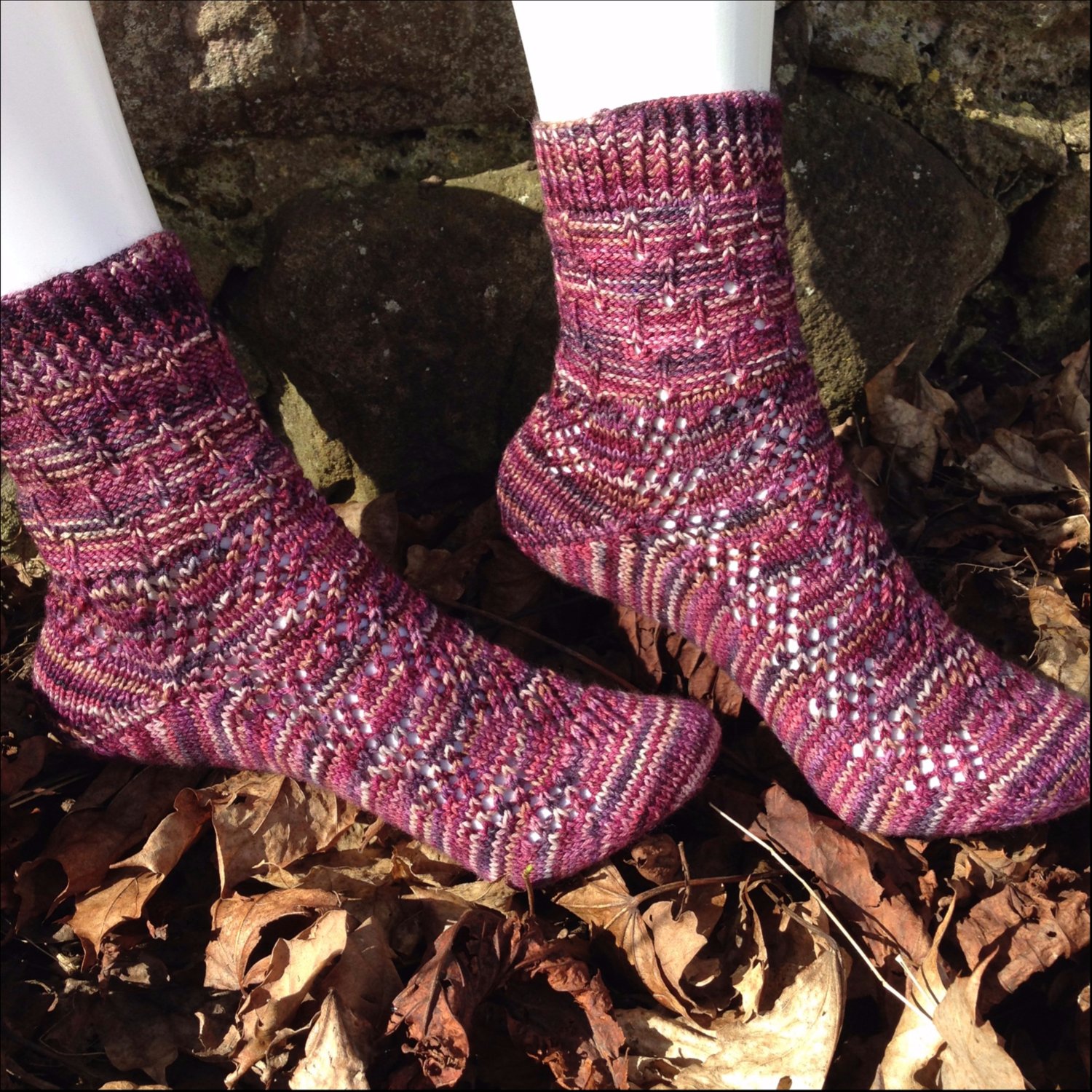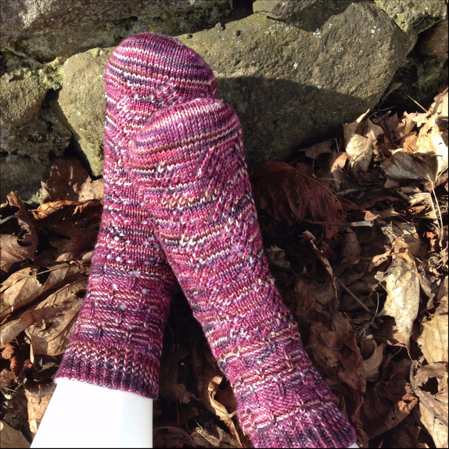 These socks are knit cuff down using the magic loop method (although the purchaser could easily adapt it for two circulars or double points).