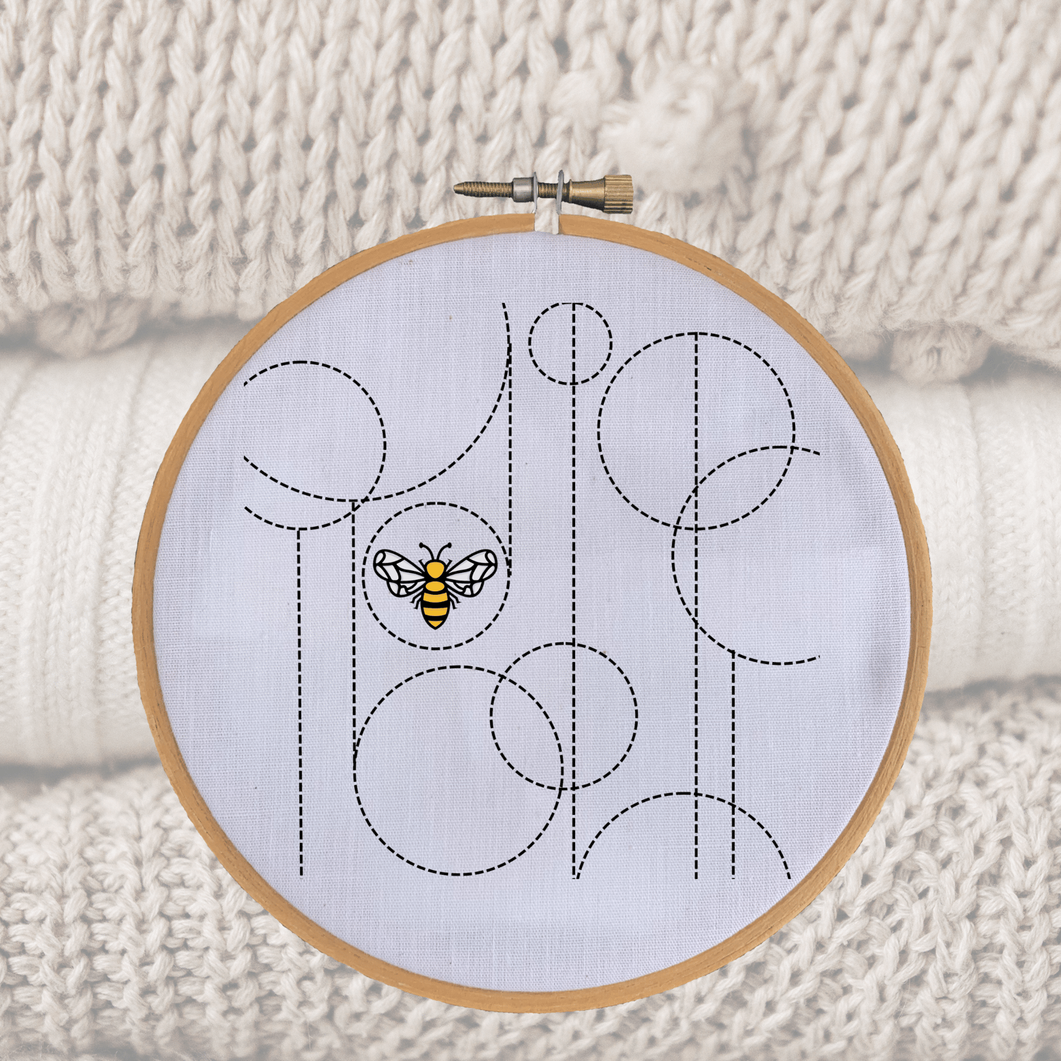 Create buzzworthy stitching sensations with this sashiko bumblebee embroidery pattern pack featuring a bee motif in a modern form of Sashiko.