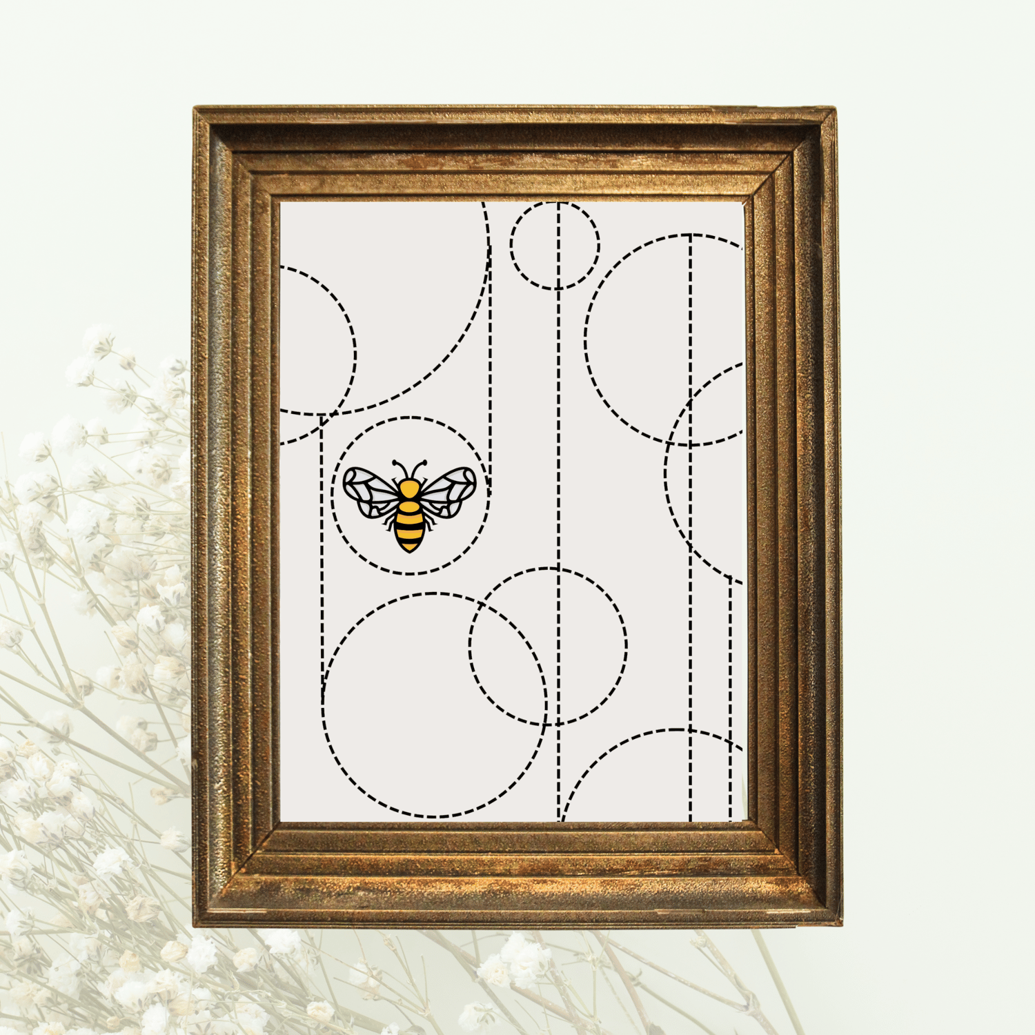 The simplified sashiko style bee outlines pair beautifully with running stitches, whether you want to preserve minimalism or get dimensional. This textured set works wonders for quilts, clothing, bags, and fiber wall art!