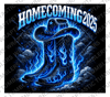 Celebrate Homecoming Football 2025 with this bold western design featuring cowboy boots and a hat surrounded by glowing blue flames. Delivered as a high-resolution PNG, this digital file is ideal for sublimation, DTF, or DTG printing on shirts, hoodies, and spirit wear. Instant download—no physical item shipped.