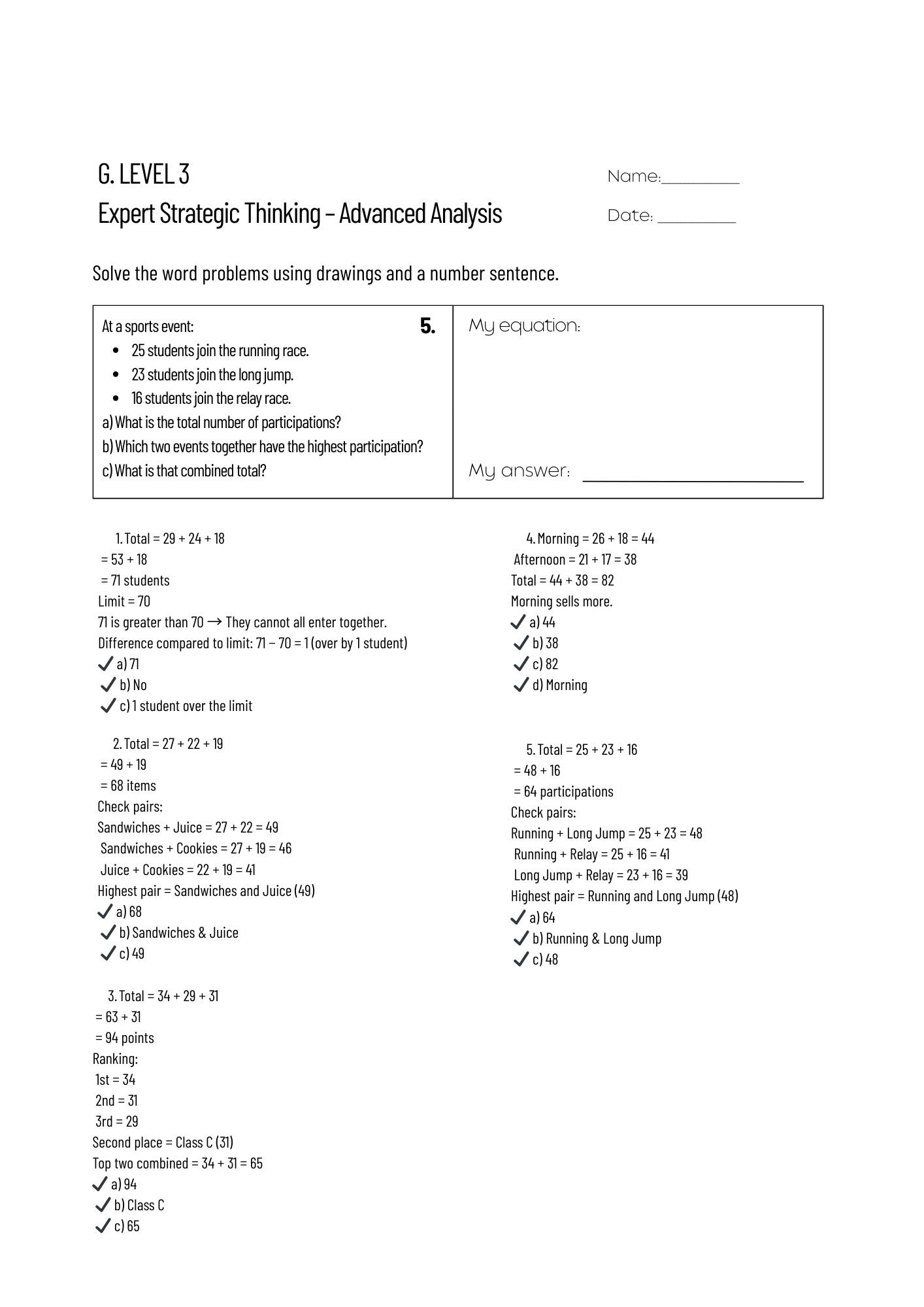 This Grade 1 Addition Word Problems Workbook 40 pages is designed for homeschool families and students who need structured enrichment. It guides learners step by step — from basic addition within 20 to multi-step and strategic thinking problems with numbers up to 100.
