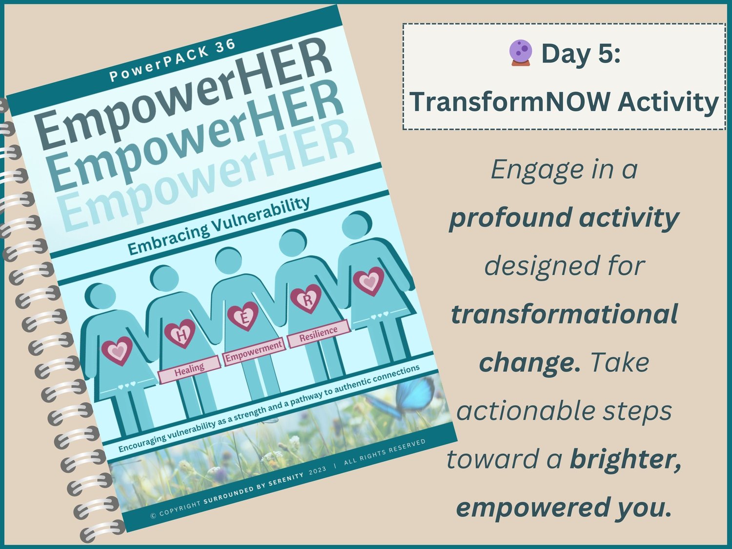 🔮 Day 5: TransformNOW Activity * Engage in a profound activity designed for transformational change. Take actionable steps toward a brighter, empowered you.