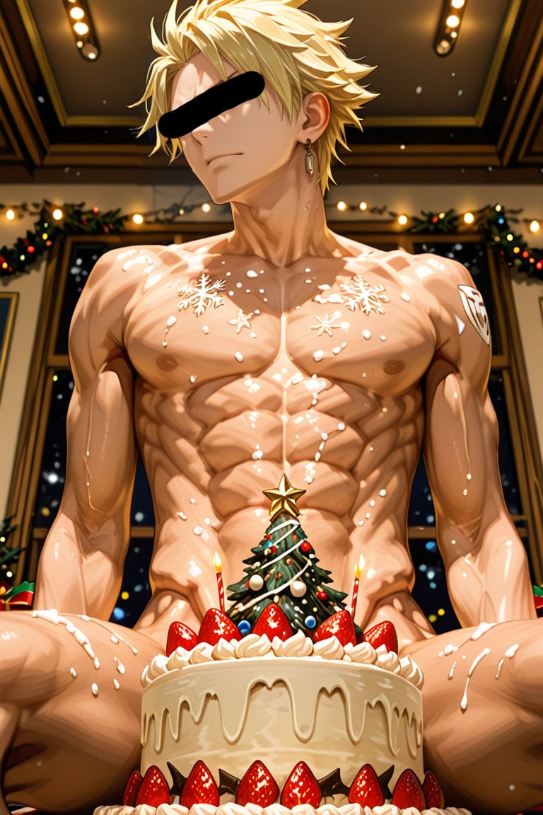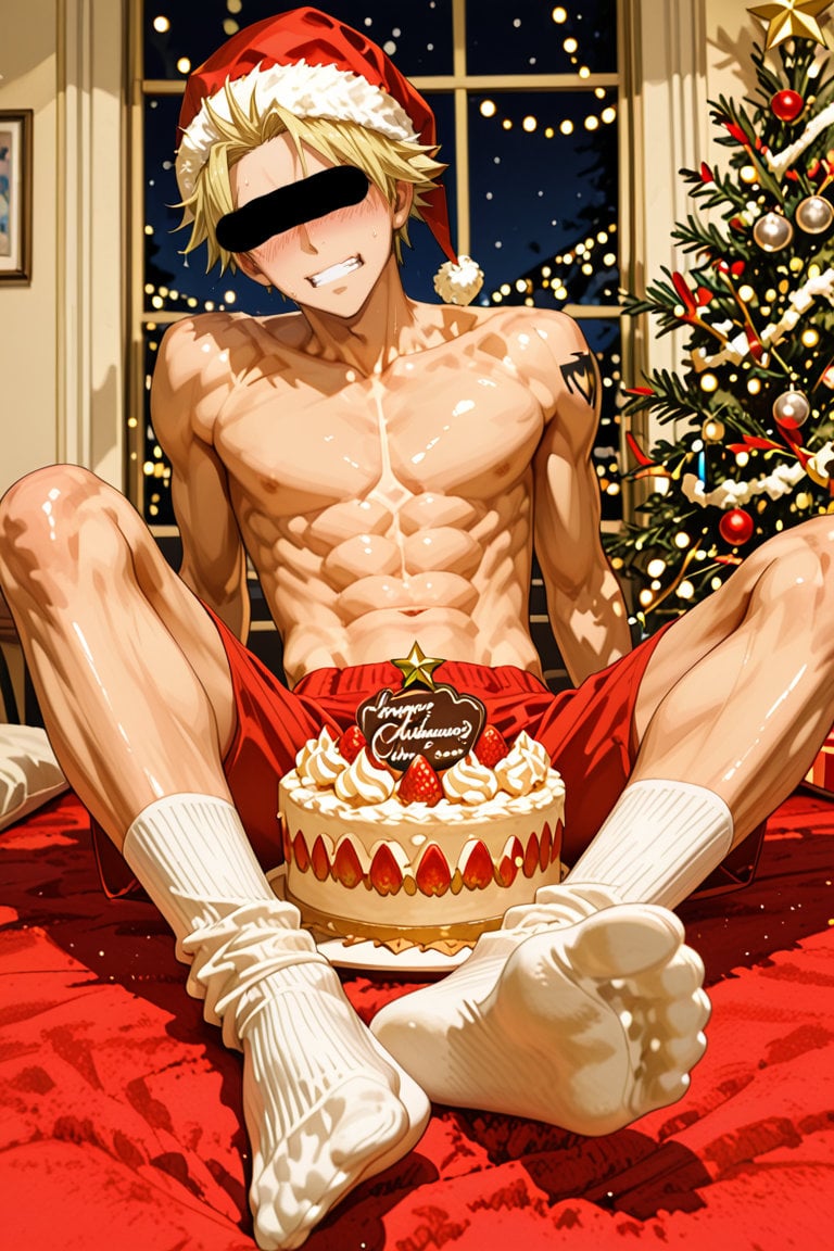 クリスマスをテーマに、サンタやトナカイコスプレをしている男性を、キャラクターごとにお任せ作成しました。男らしいキャラクターの魅力を思い切って表現しました。