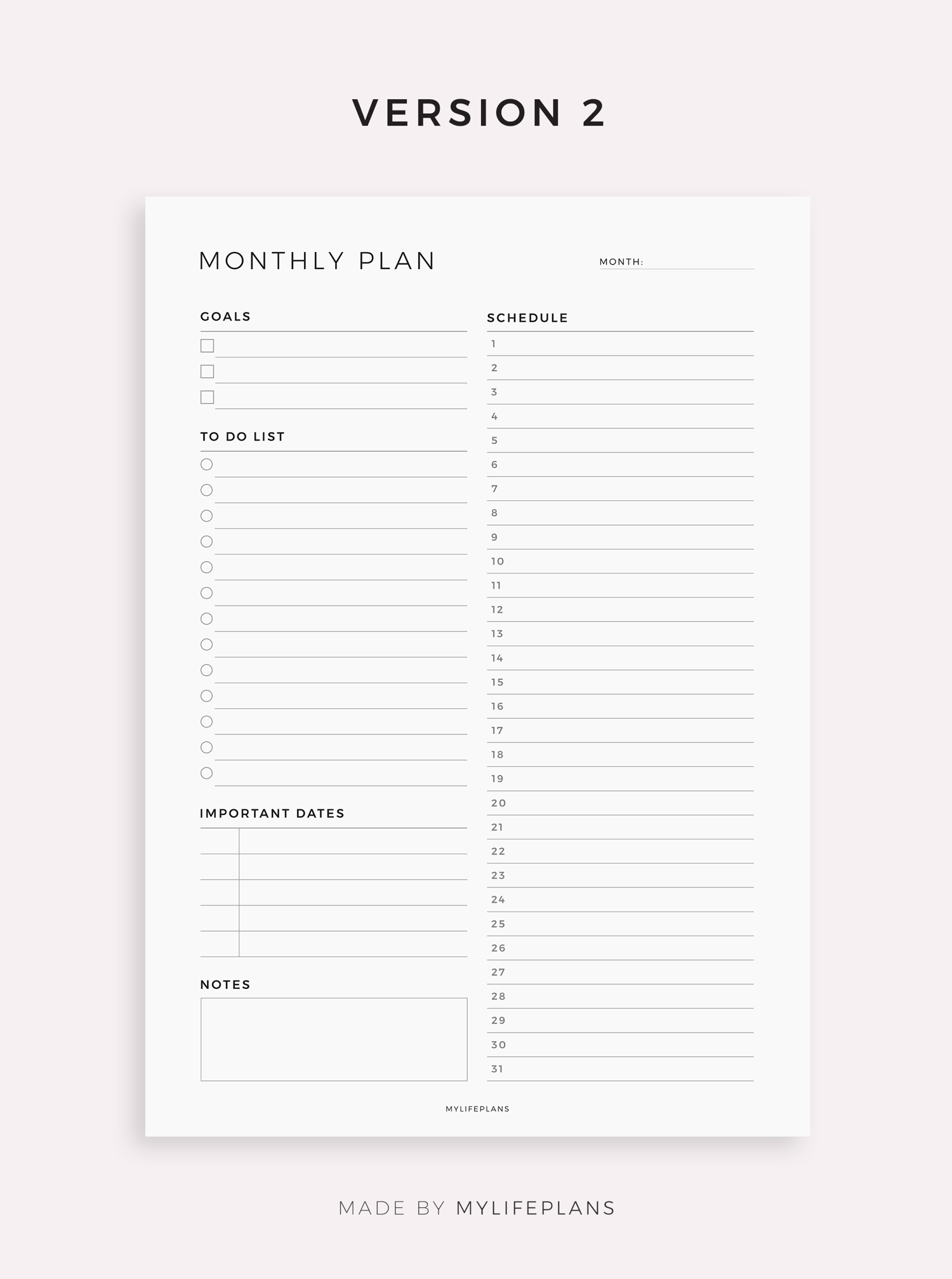 Month At a Glance Planner for Remarkable, Supernote, Kindle Scribe, Boox, Kobo