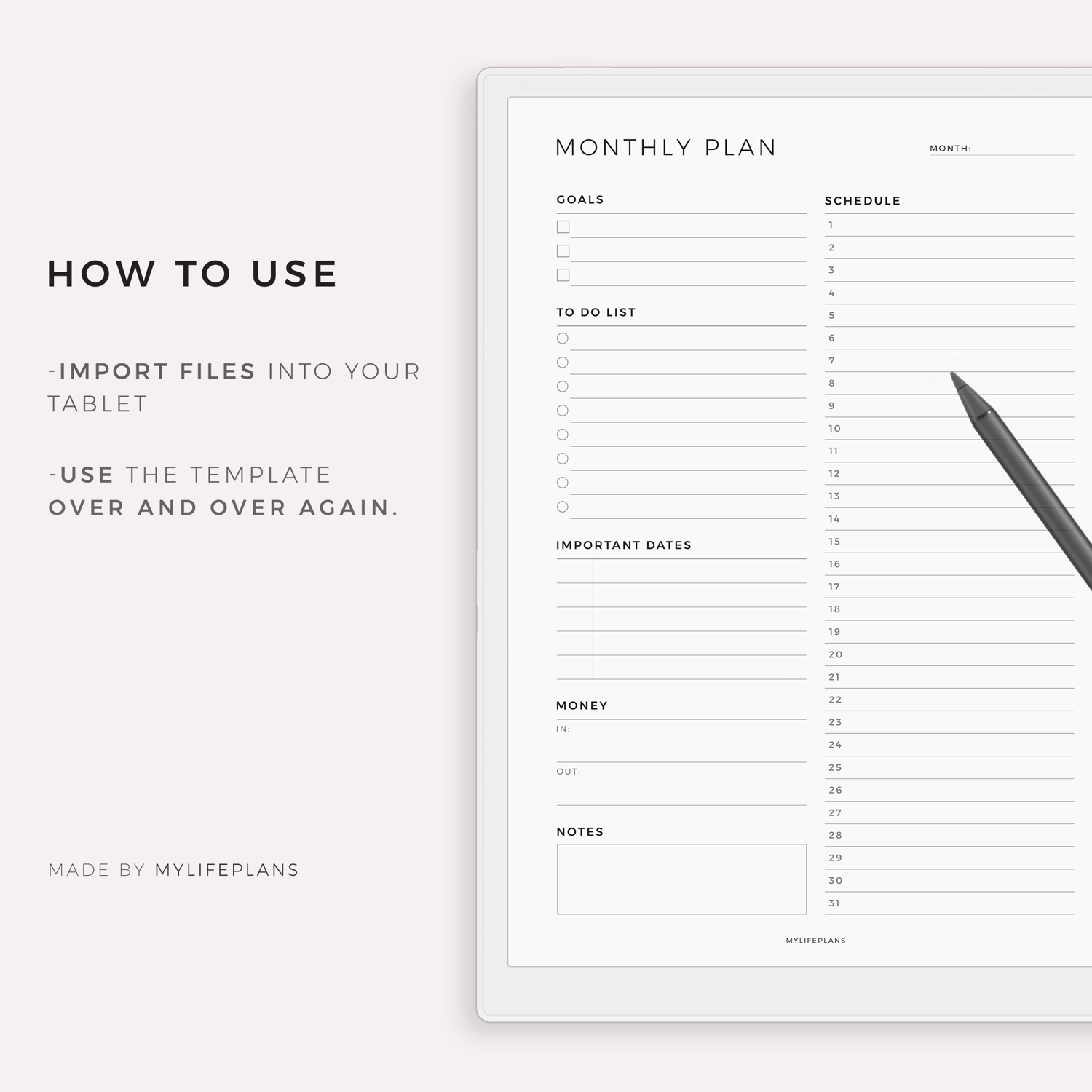 Month At a Glance – A modern, minimalist template that works seamlessly with a wide range of e-ink devices. Simply download, import, and start using it right away.