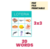 - 20 calling cards: coral, cangrejo, delfin, anguila, pez, ballena, medusa, langosta, pulpo, orca, ostra, caballo de mar, foca, tortuga marina, tiburón, concha, camarón, estrella de mar, mantarraya, morsa (coral, crab, dolphin, eel, fish, whale, jellyfish, lobster, octopus, killer whale, oyster, seahorse, seal, sea turtle, shark, shell, shrimp, starfish, stingray, walrus)