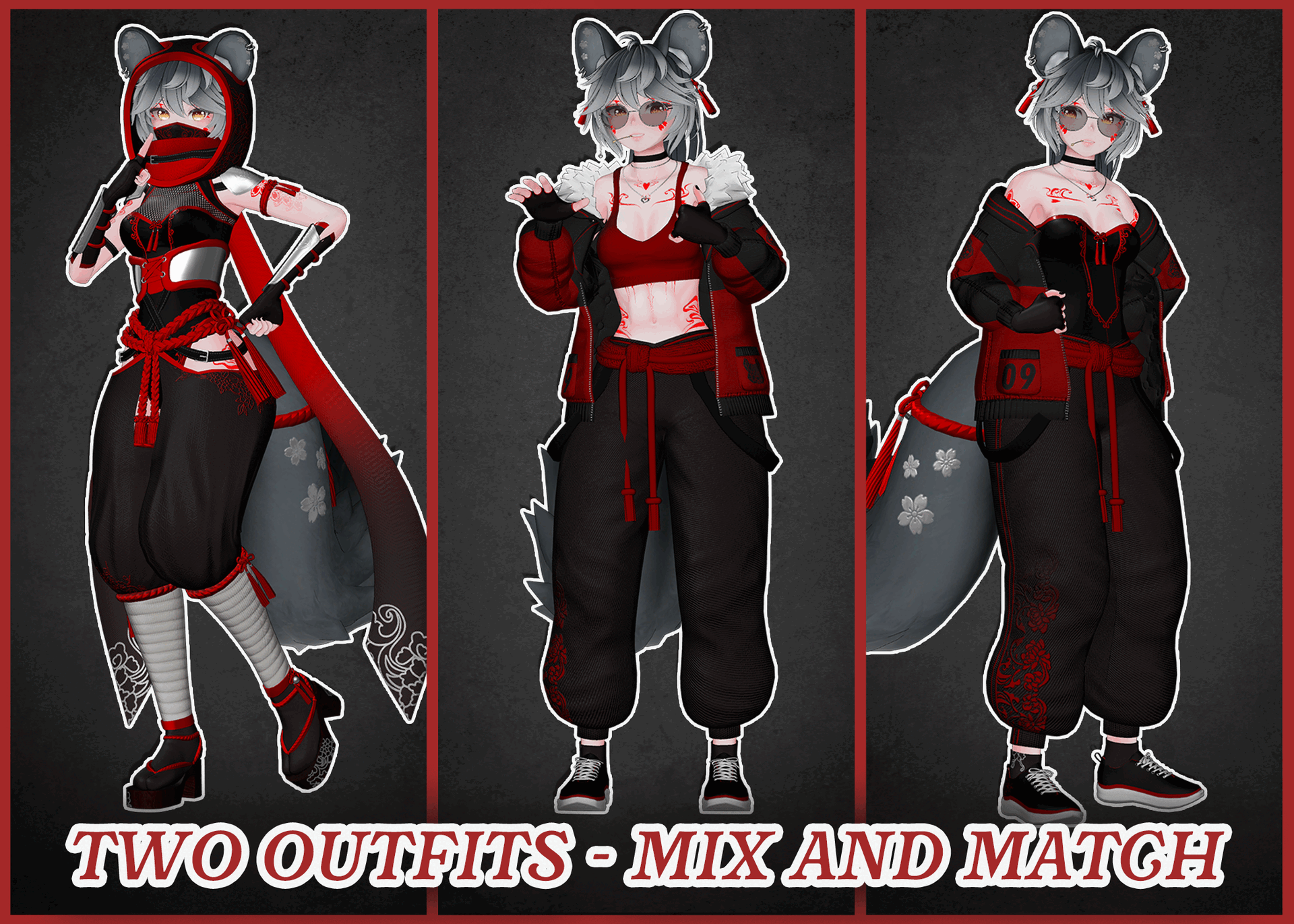 - Comes with toggleable idles for ears, scarf, and tail. Makes the avatar more lively!