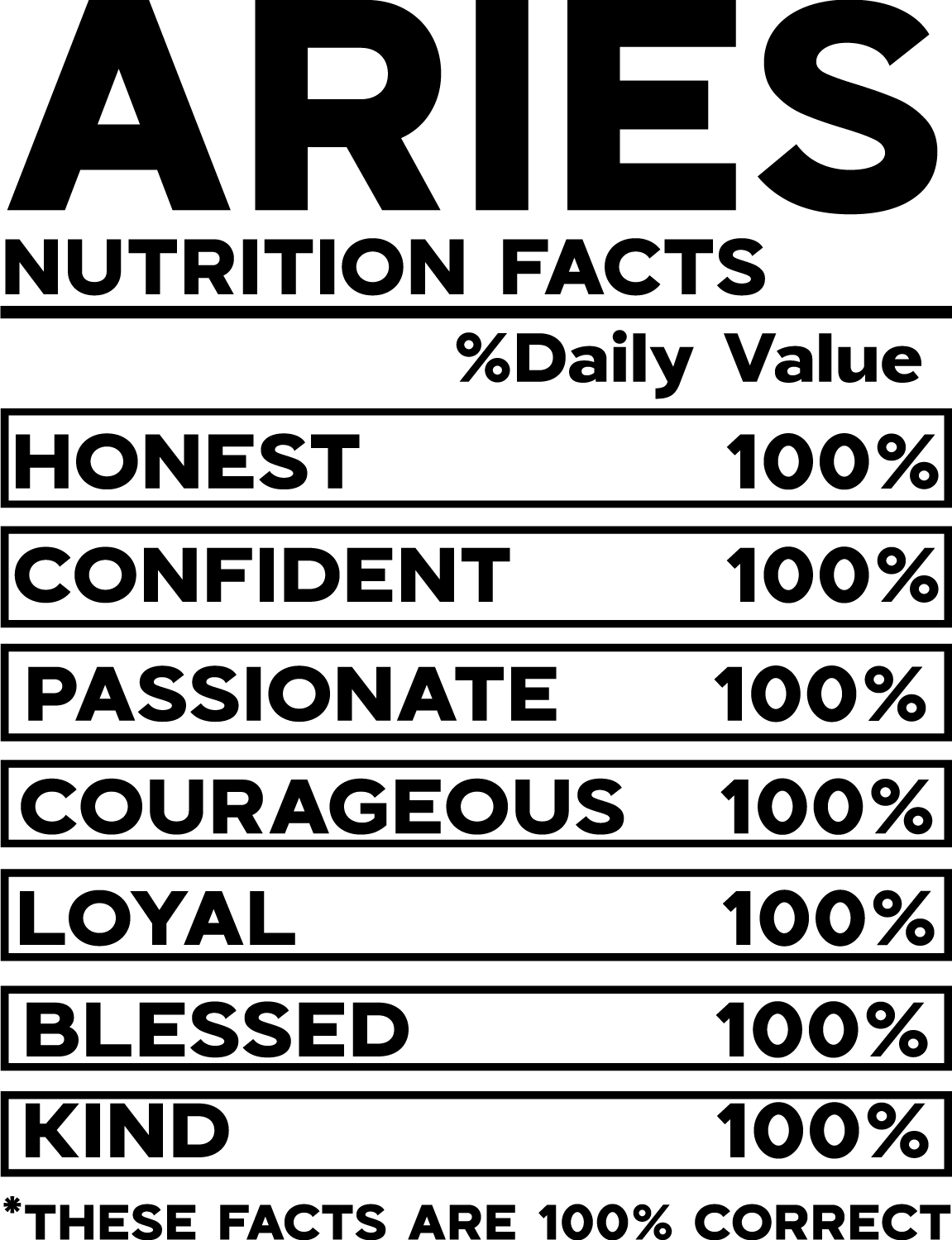 Z01- Aries Nutrition Facts – Zodiac Personality Design