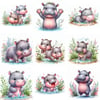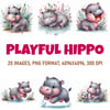 Transform your creative projects with our "Cute Playful Hippo Clipart" collection! This digital pack includes 20 unique and whimsical images, each in PNG format at a high resolution of 300 dpi and 4096 x 4096 px.