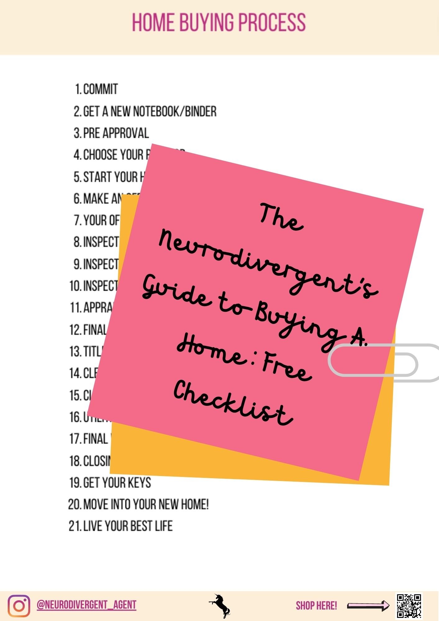 This free overview of the home-buying process is made for the neurodivergent mind. Simple and easy to follow it is a step-by-step list of what you can expect when you are buying a home.