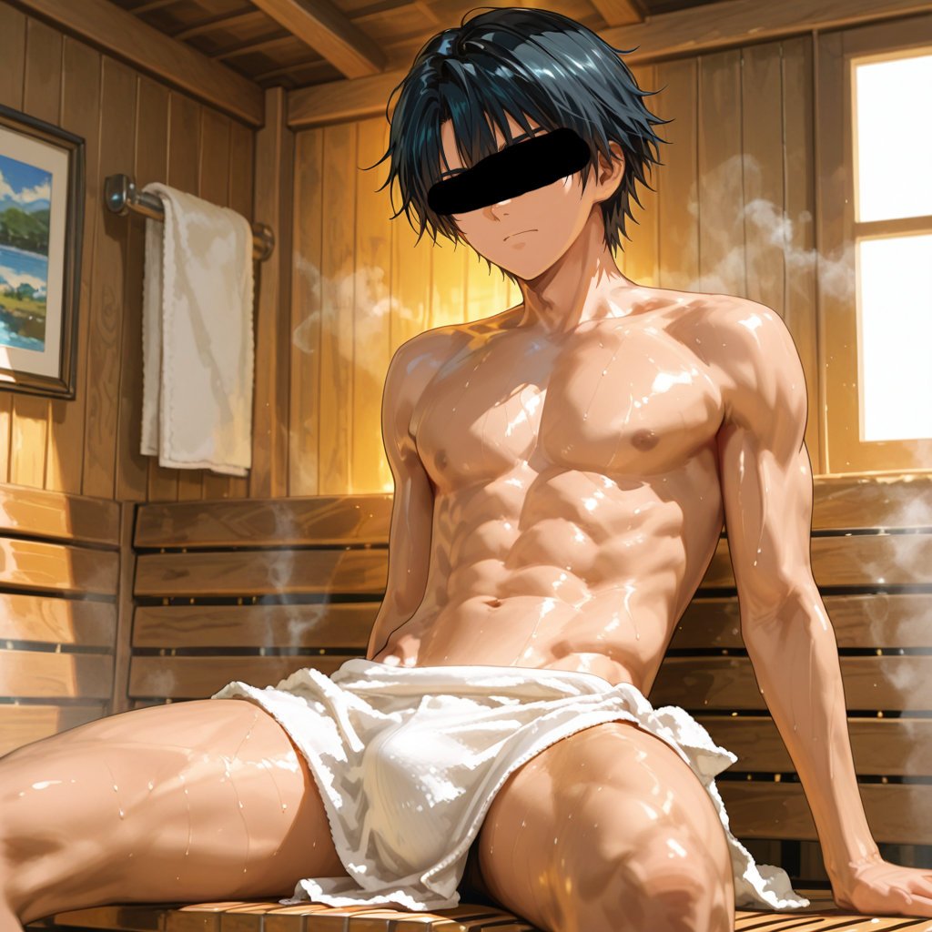 サウナで「整う」をテーマに、男らしいキャラクターの魅力を思い切って表現しました。
