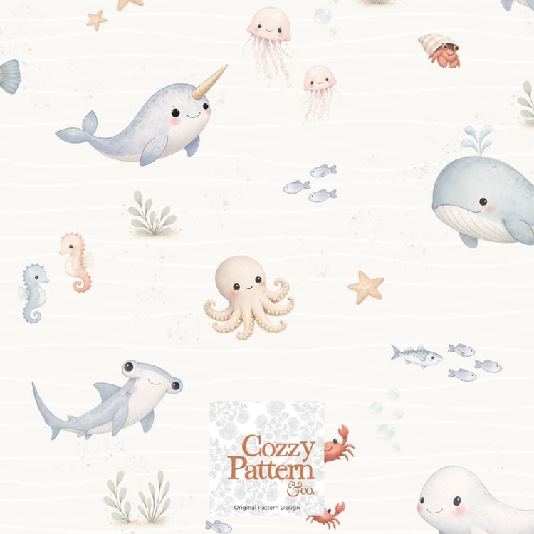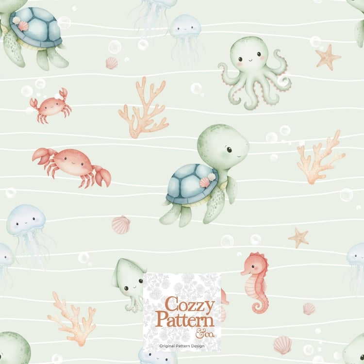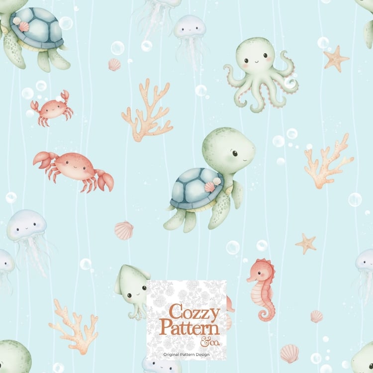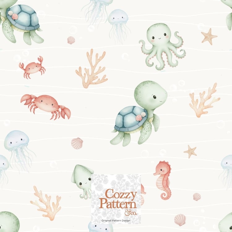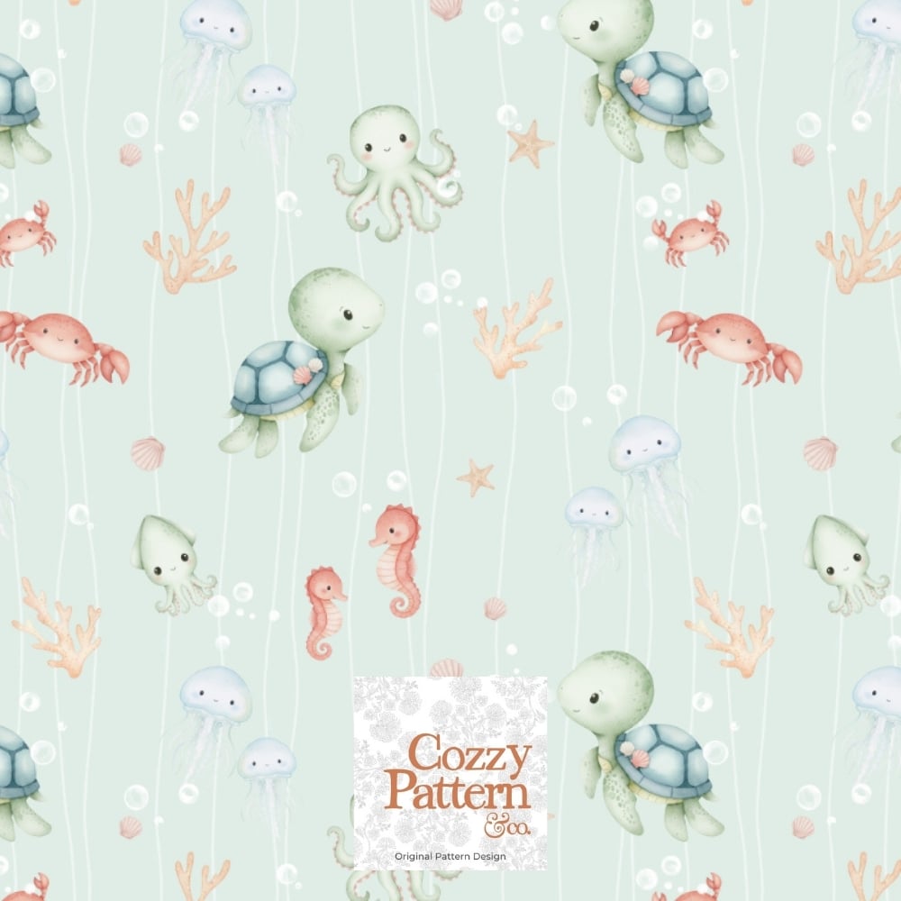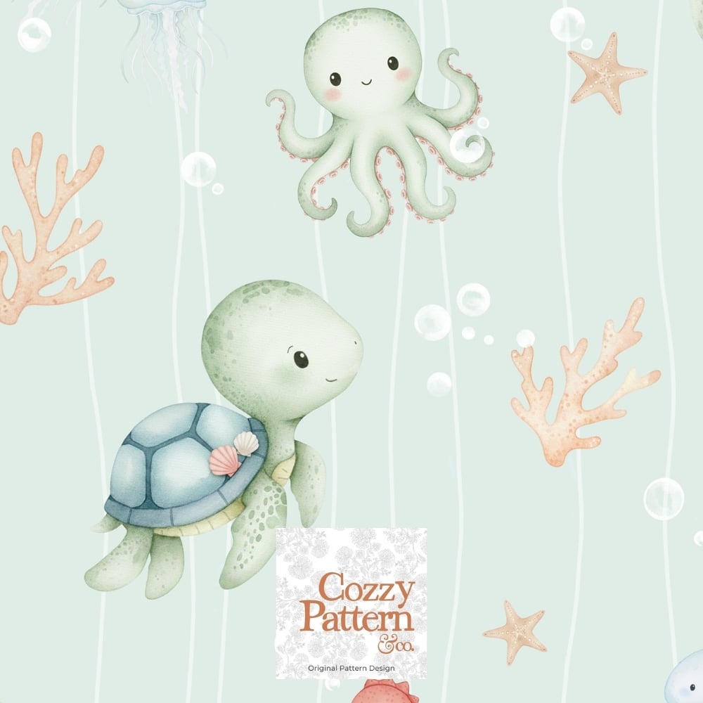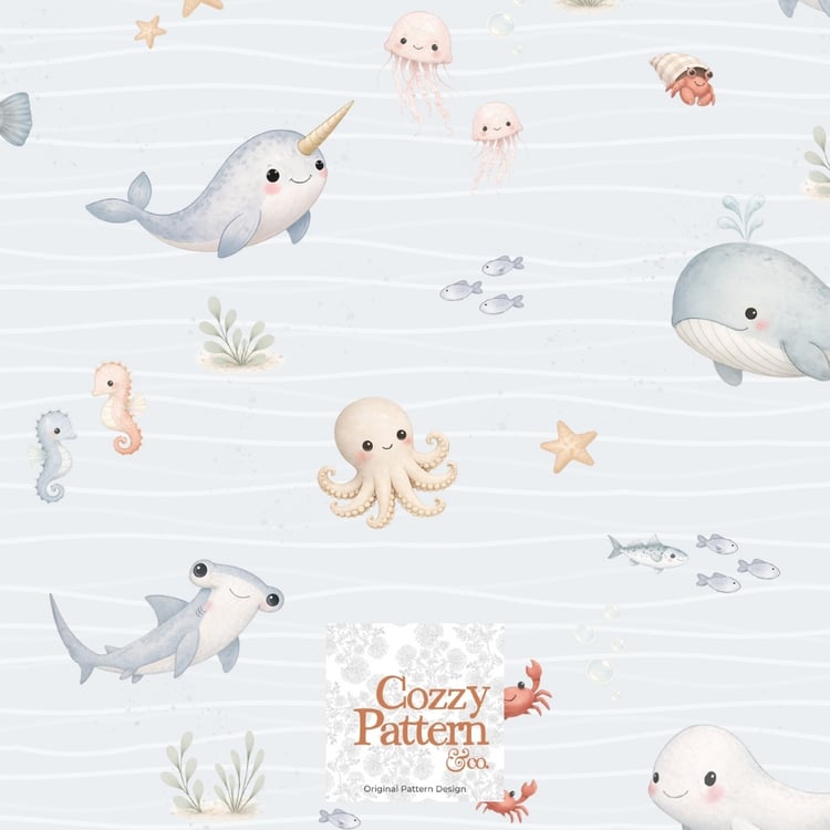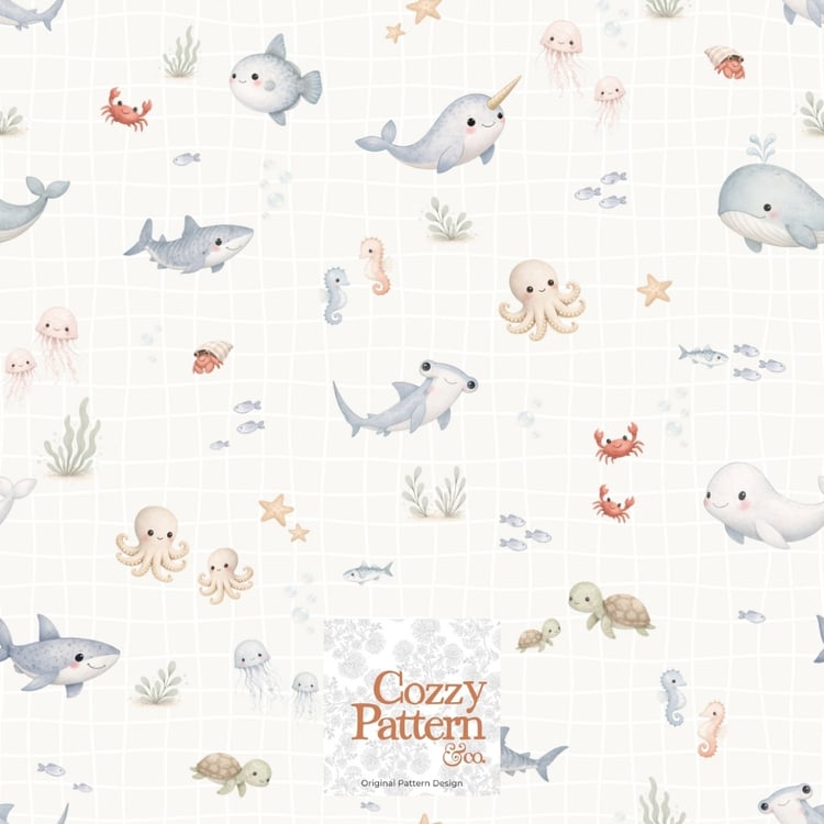 Cute Ocean Animals Seamless Pattern – Baby Sea Life Nursery Design | Commercial License Included