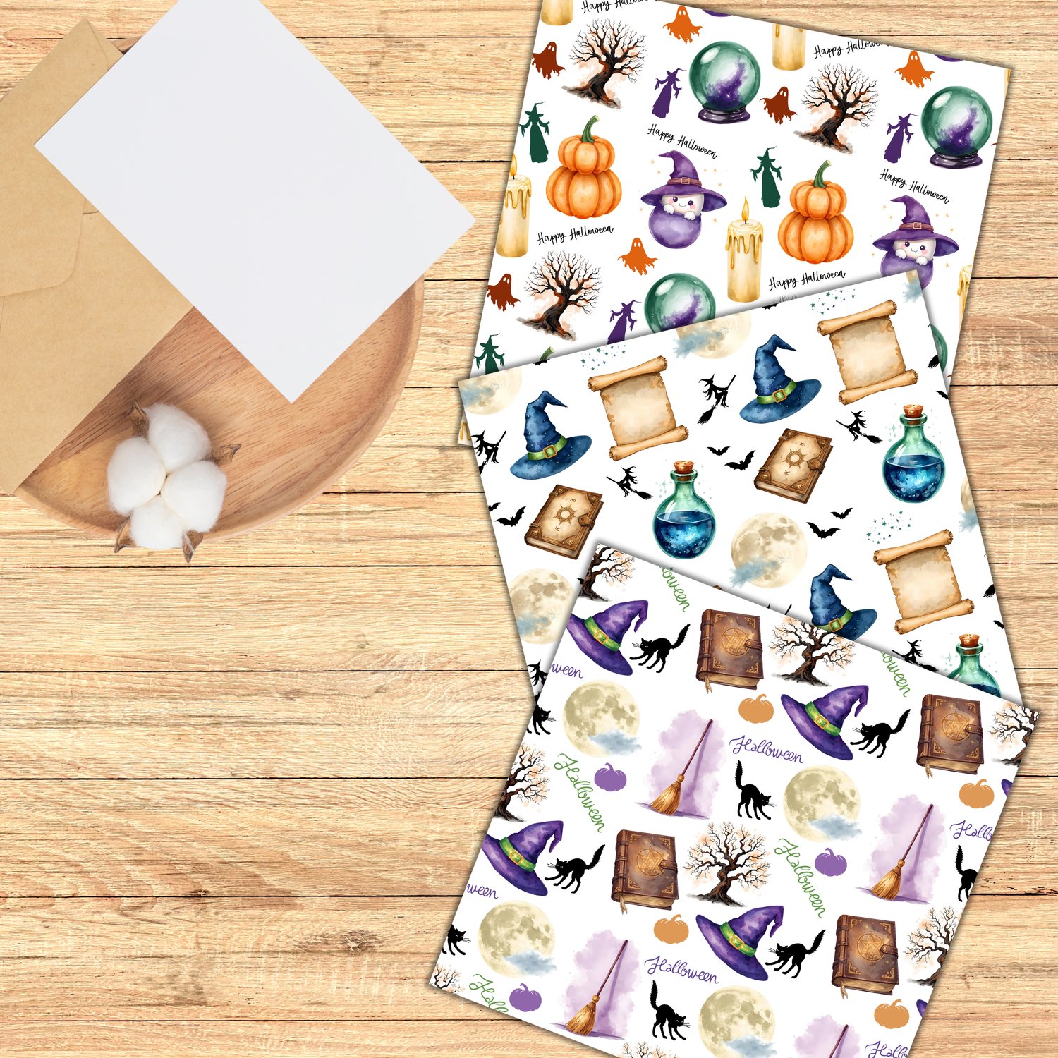 Creating Halloween-themed invitations, party printables, greeting cards, gift wrap, treat bags, planner stickers, scrapbooking pages, social media graphics, product packaging, and seasonal fabric designs. The seamless format makes it easy to apply these patterns to both digital and printed projects.