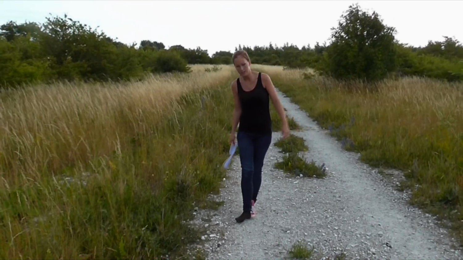 Magdalena is out walking and to pass the time she talks to her friend on her mobile.Suddenly she steps on a blade of grass and drops her mobile.Immediately after the accident, the first thing she thinks about is where her mobile phone went, but when she tries to move on, the pain in her foot explodes and she can not put weight on it.She takes off her shoe and starts jumping around on one leg and looking for her mobile, but after a while she is forced to give up and now has to jump back on one leg to try to get help.