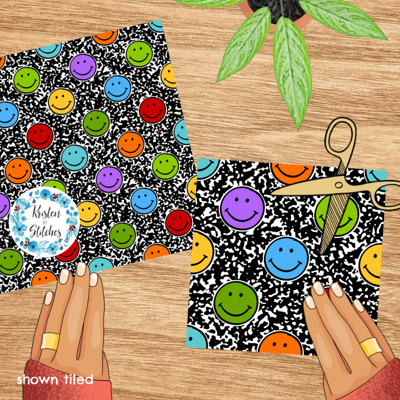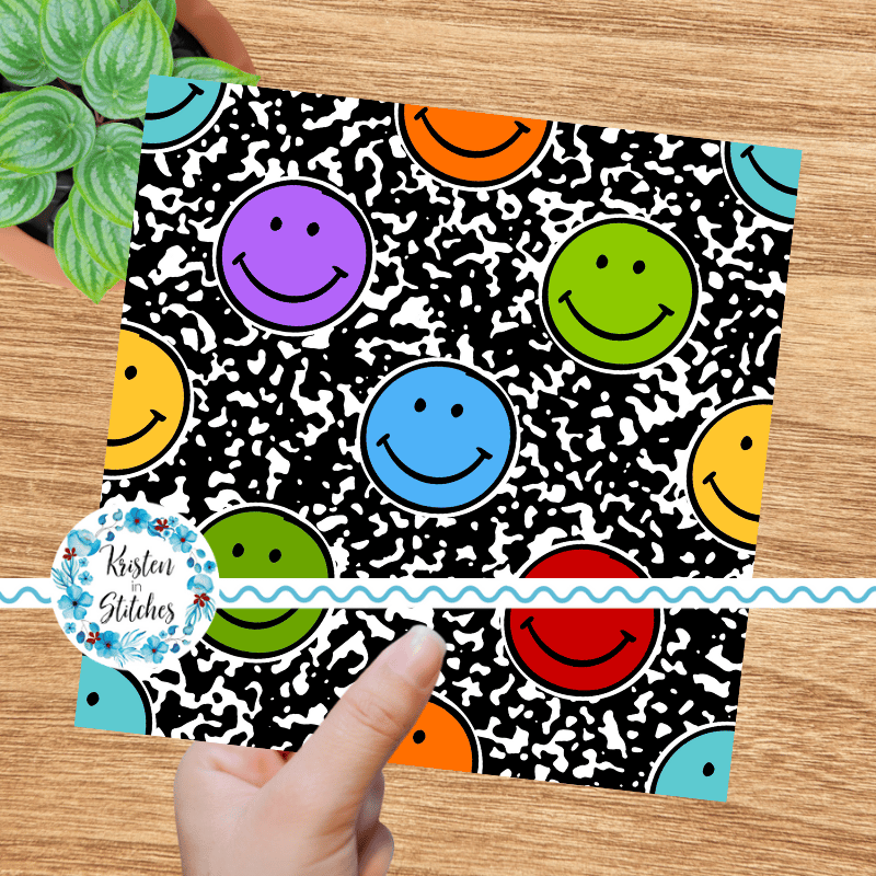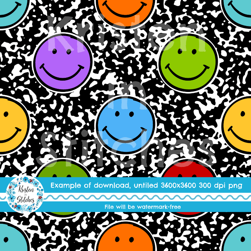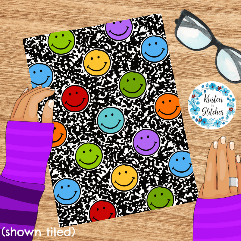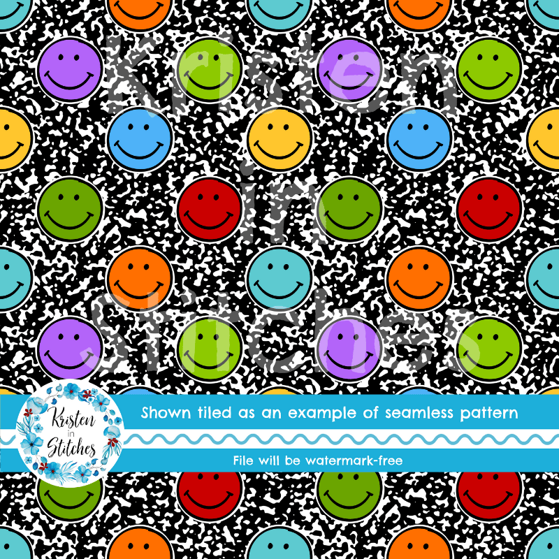 Bright Rainbow Happy Face Composition Notebook Seamless Pattern