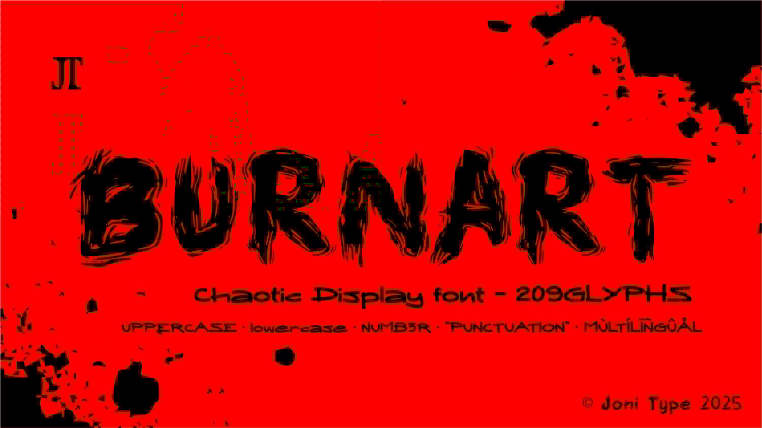 Featuring over 209 glyphs, Burnart includes uppercase, lowercase, numbers, punctuation, and multilingual support, making it versatile while maintaining its edgy personality. Every character is crafted with an organic, hand-drawn feel, giving your design a powerful and unapologetic voice.
