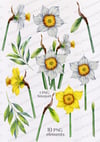 Daffodils, Narcissus. Spring flowers. Easter and Mother's Day decoration. Love, birthday, friendship theme
