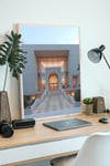 This striking AI-generated artwork showcases a modern interpretation of mosque architecture, emphasizing minimalist design principles and a grand, inviting staircase. The clean lines and open spaces create a sense of serenity and peace. This piece highlights the innovative use of AI in architectural visualization, offering a fresh perspective on traditional religious structures. Ideal for those interested in contemporary design, Islamic art, and the intersection of technology and creativity.