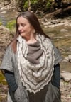 Haverhill is a two-color, top-down, triangular shawl. The upper body of the shawl is garter stitch and the lower body includes lace and bobbles. You can not work the bobbles if you choose.