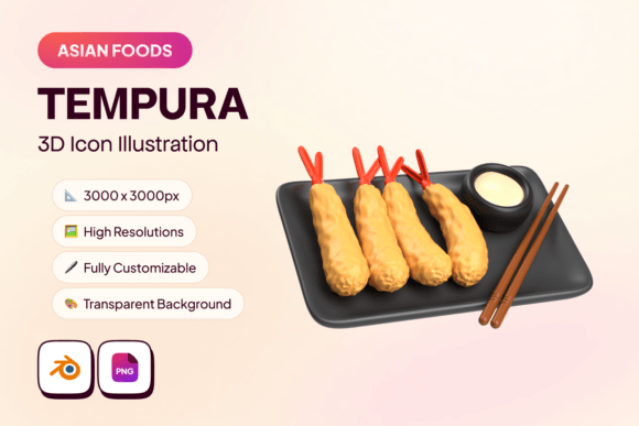 Asian Foods 3D Icon - Tempura | High-Resolution, Customizable Design for Projects