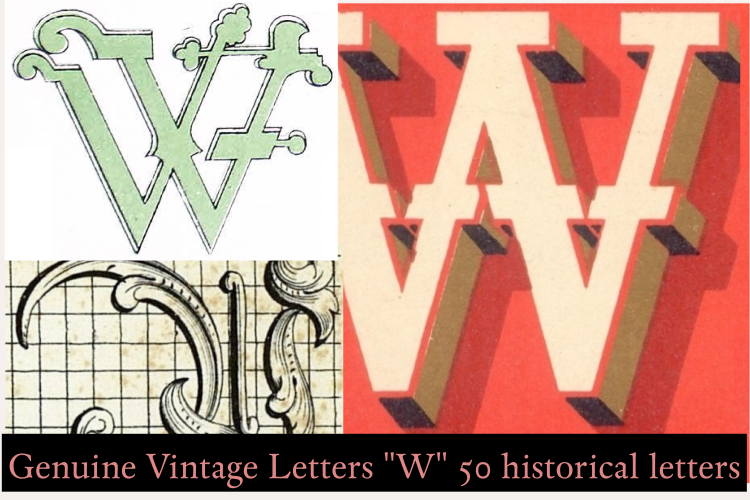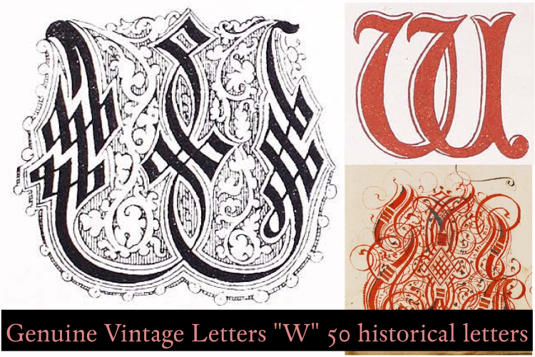 A authentic and genuine set of 50 (!!!) letters "W" from historical sources like old catalogues, books, magazines ad type specimens. Many historical periods and styles.Perfect to complete your artwork at drop caps uses, titles of books, ideas for folders, advertise, books covers, illustrations and much more.